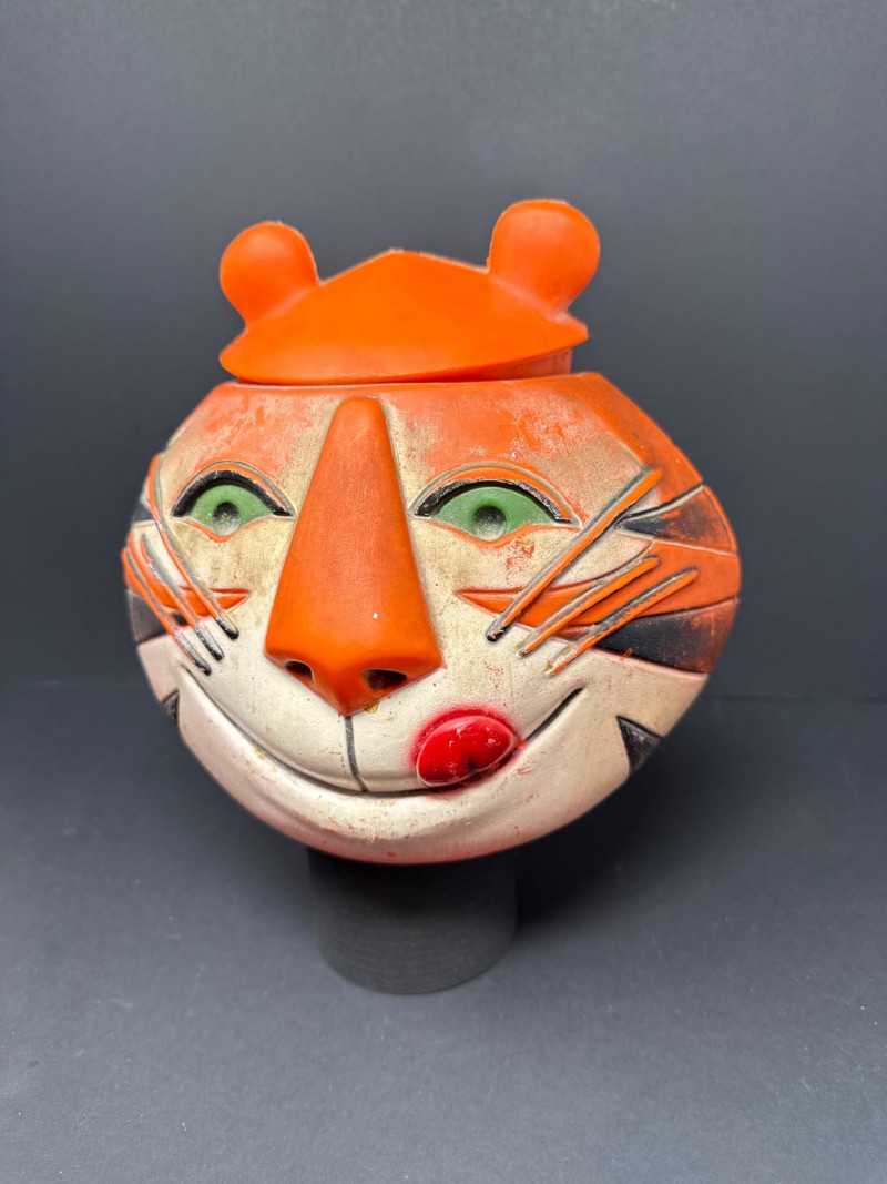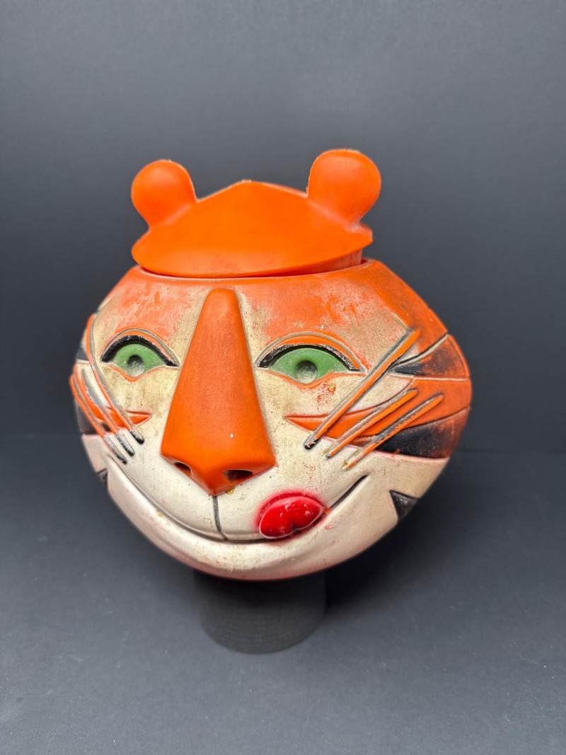 This original Kellogg’s promotional cookie jar was issued as part of a limited advertising campaign in the late 1960s and is among the rarest Tony the Tiger collectibles. Its sculptural form and playful design reflect the height of mid-century cereal advertising art.