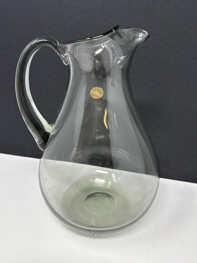 Vintage Holmegaard Danish Blown Glass Pitcher 8” H x 6” W