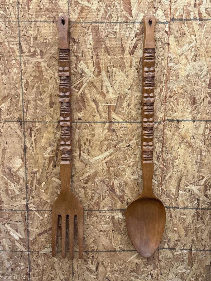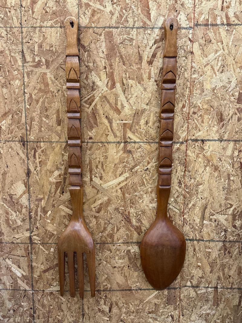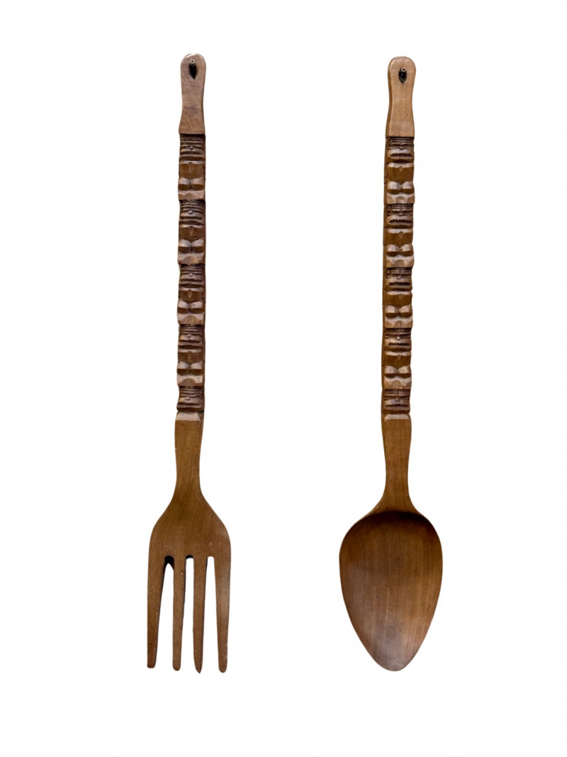 Lot # 26 - Giant Tiki Design Carved Wooden Fork & Spoon 41"H