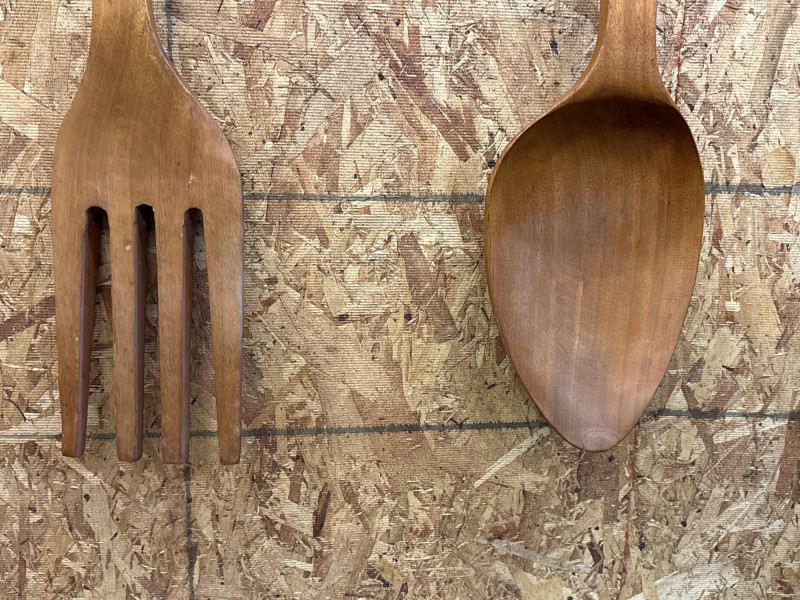 Giant Tiki Design Carved Wooden Fork & Spoon 41” H x 5.5” W