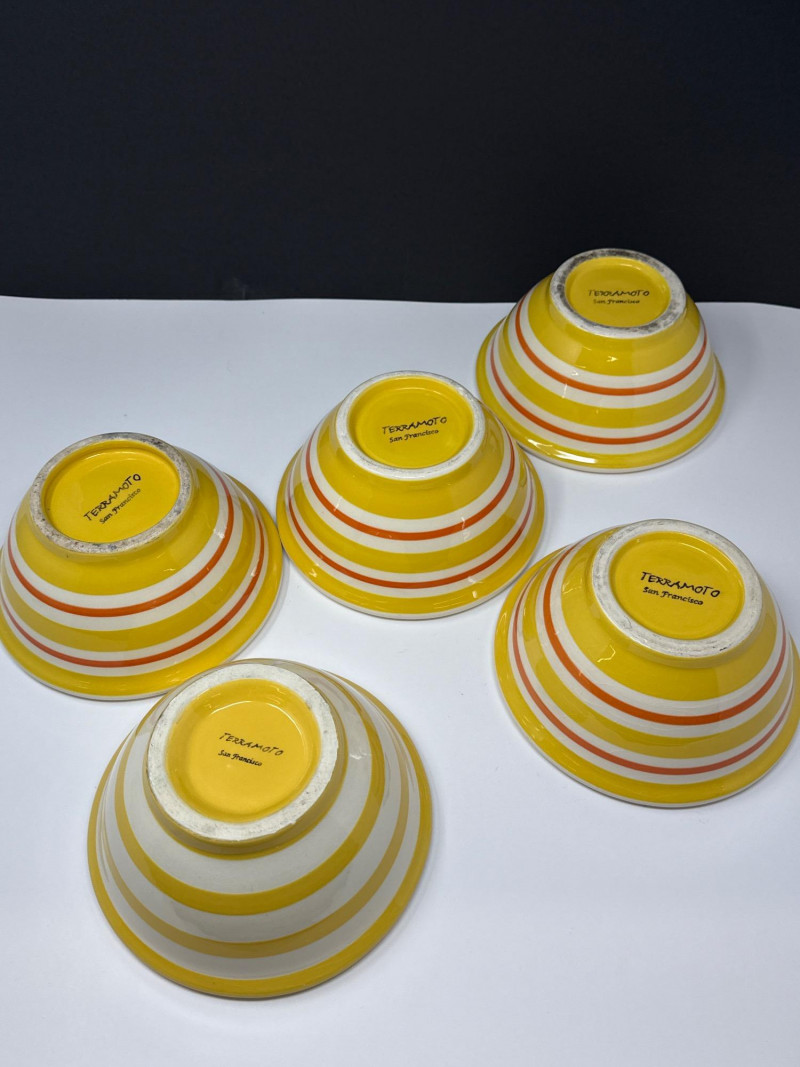 Vintage Terramoto Striped Ceramic Yellow Bowls (x5)