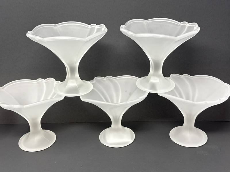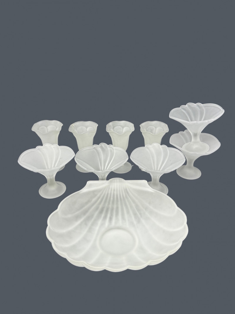 Lot # 50 - Frosted Glass- Borgonovo Italian Compotes, Sundae Cups & Shell Bowl