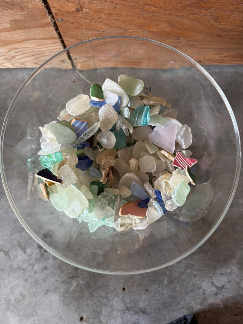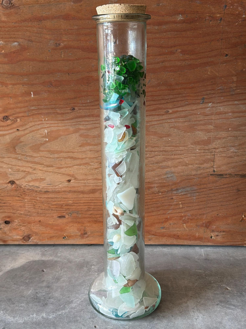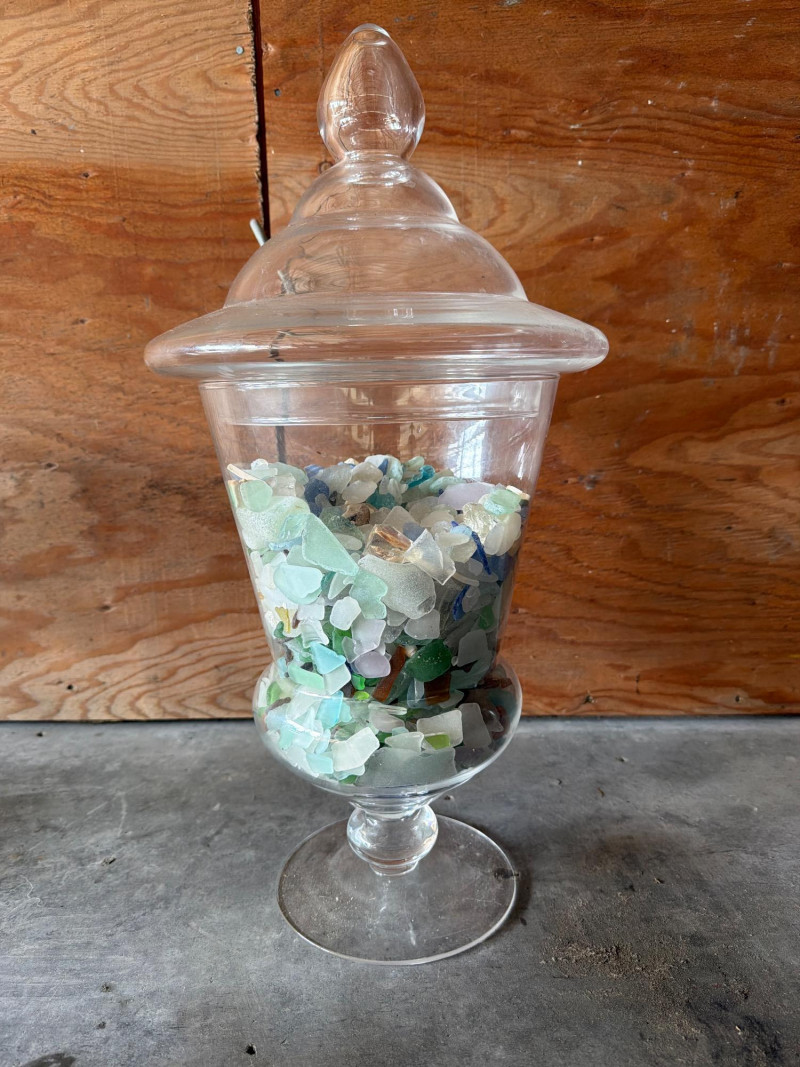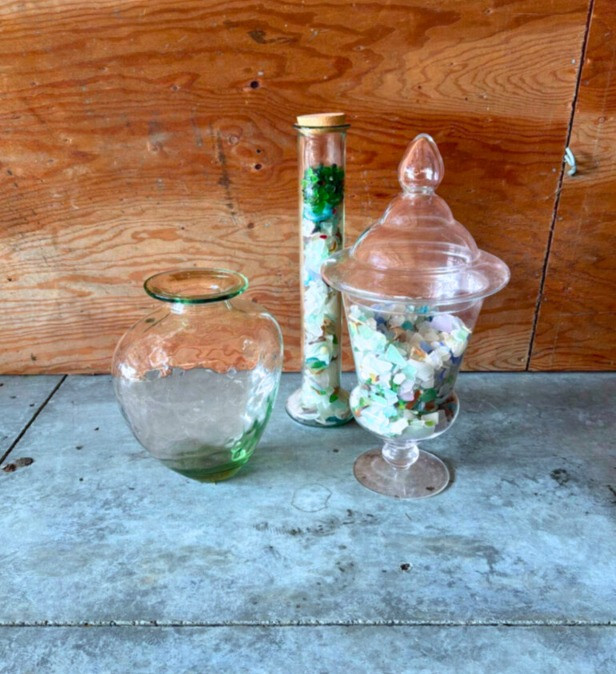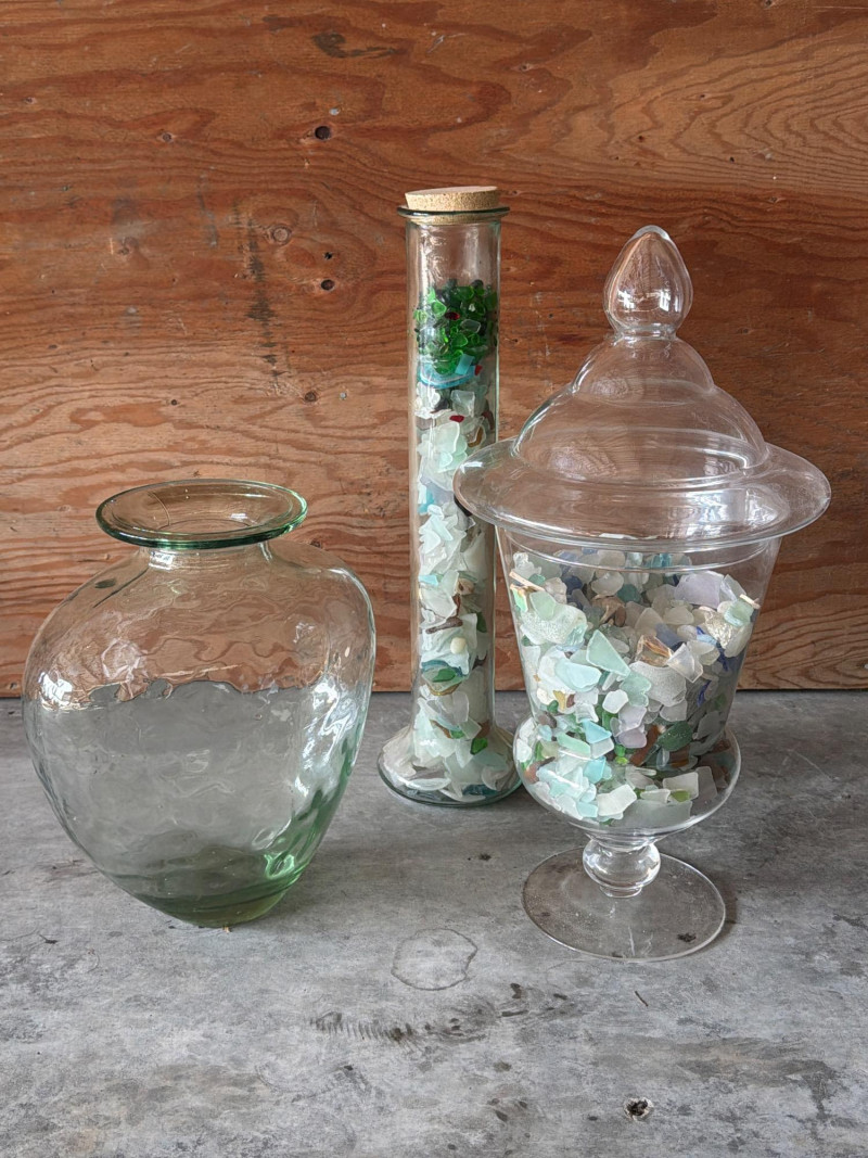 (3) Glass Vessels- We weighed the two filled with Sea Glass:
