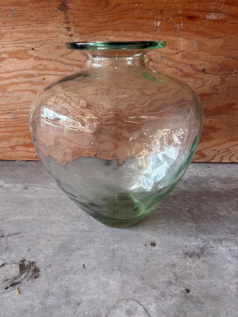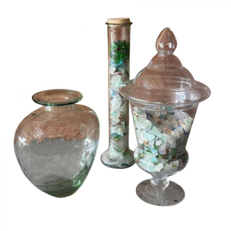 Lot # 67 - Two Large Lidded Vessels Full Of Sea Glass & One Large Green Vase