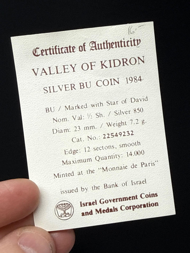 Lot # 132 - 1984 "Valley of Kidron" Silver BU Half Shekel