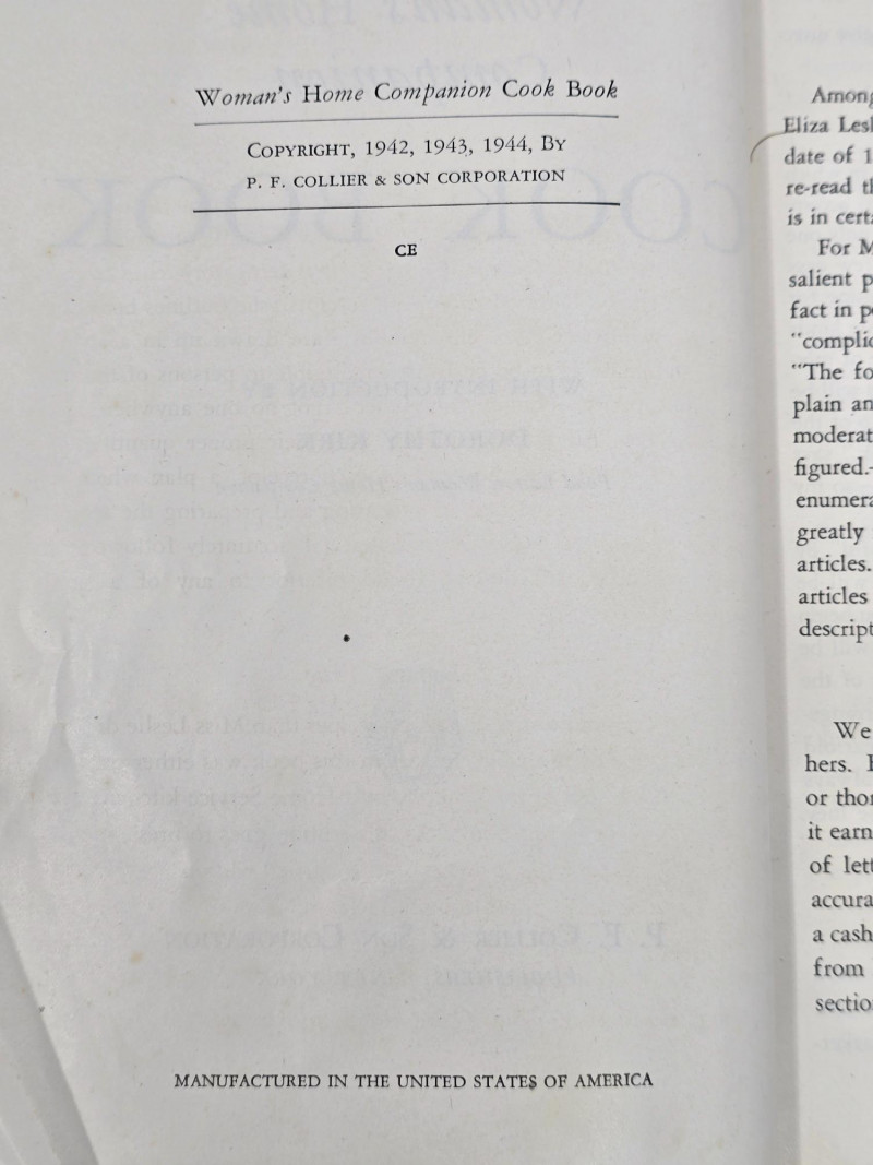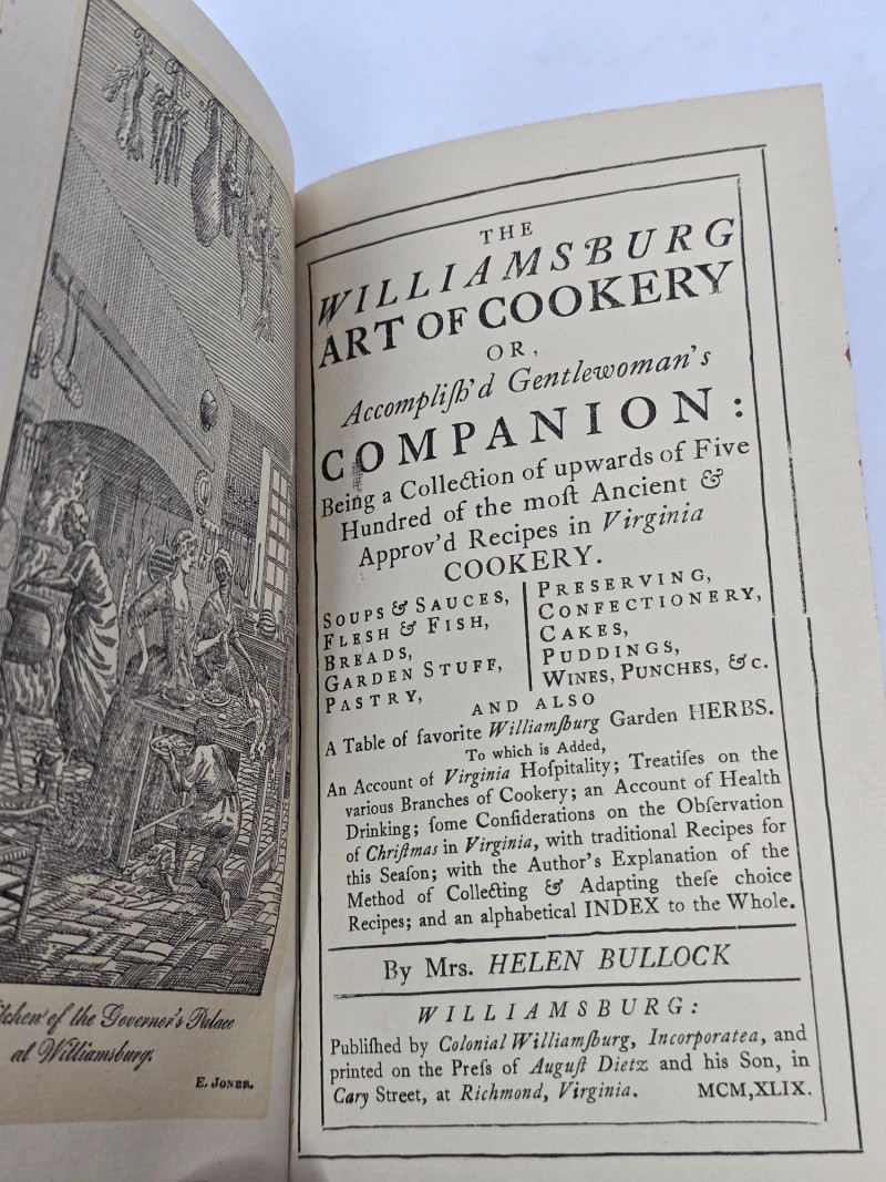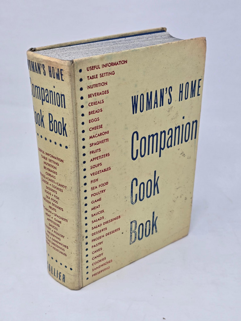 A curated set of six vintage cookbooks showcasing American culinary traditions from the early 20th century through the mid-century modern era. These volumes offer rich historical insight into domestic life, cooking practices, and regional foodways, making them ideal for collectors, decorators, or culinary historians. Included Titles: The Williamsburg Art of Cookery– Colonial revival edition inspired by 18th-century Virginia traditions. Decorative spine, excellent for display. Woman’s Home Companion Cook Book– Comprehensive mid-century guide with indexed sections covering table settings, nutrition, meats, desserts, and more. Published by Collier. Better Homes and Gardens Cook Book– Classic red-and-white edition, a staple in American kitchens. Household Discoveries and Mrs. Curtiss Cook Book– Turn-of-the-century domestic encyclopedia. Published by Success Co. The New Butterick Cook Book– Early 20th-century volume from the Butterick Publishing Company, blending fashion and food. Culinary Echoes From Dixie– Southern regional cookbook featuring traditional recipes and cultural notes from the American South. Condition Report:All volumes are in very good vintage condition. Spines intact, covers show light shelf wear consistent with age. Pages are clean and legible, with no loose bindings. Some volumes may contain period-appropriate marginalia or handwritten notes. Display Notes:This set presents beautifully on open shelving or in a kitchen vignette. The varied spine designs and historical content offer both aesthetic and educational value.