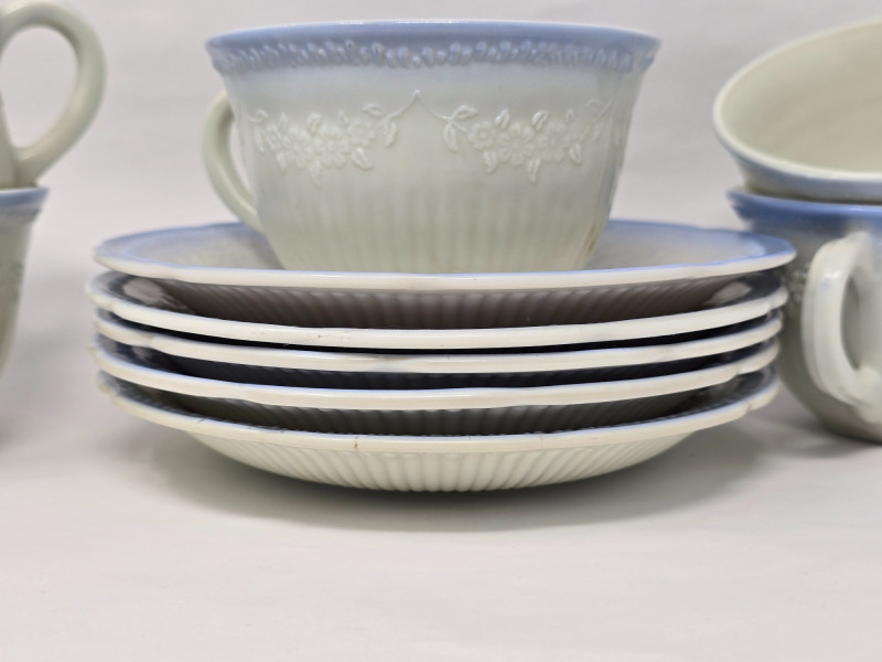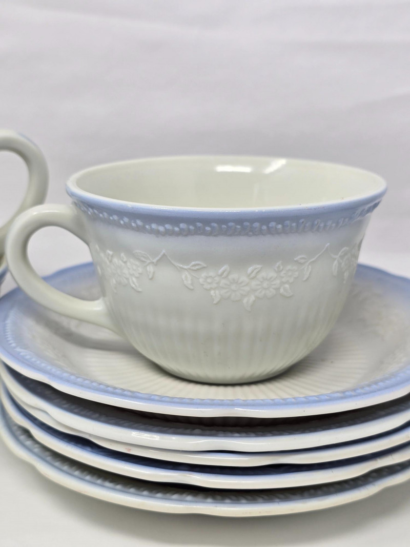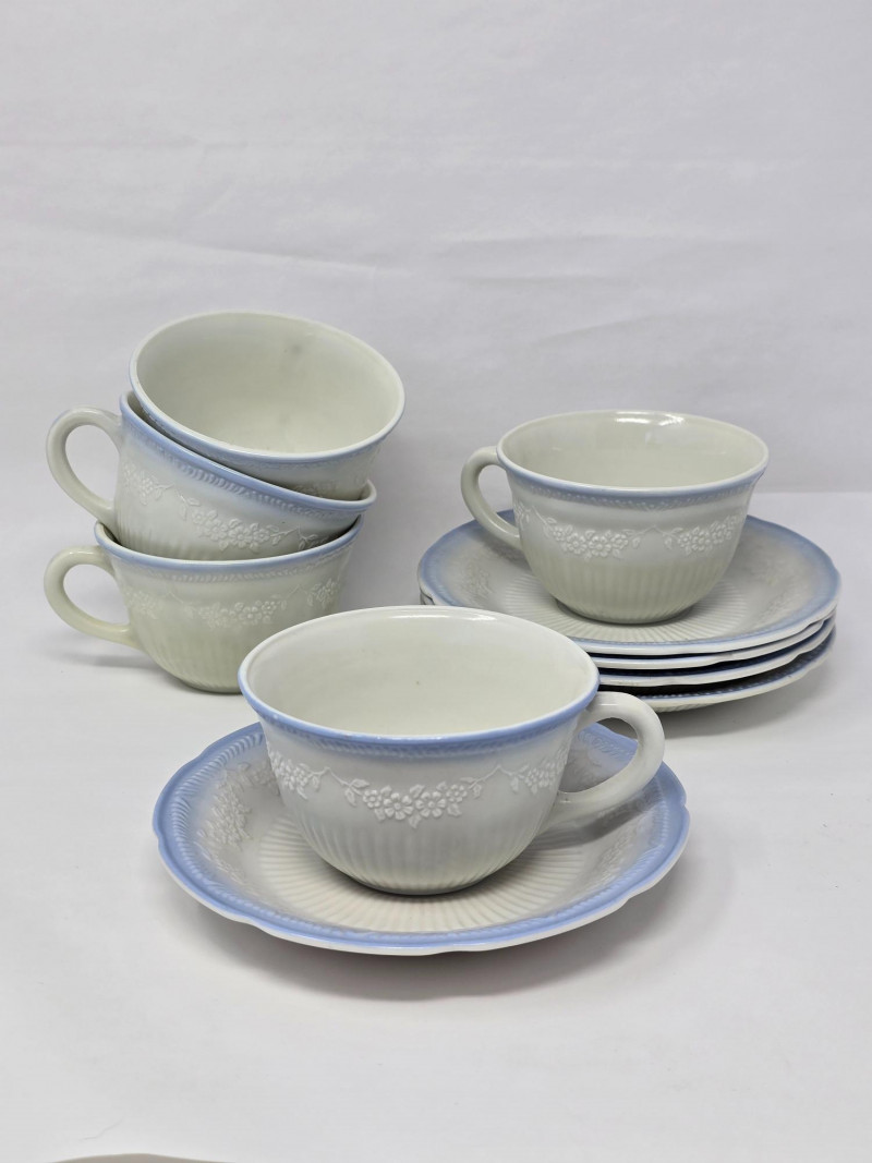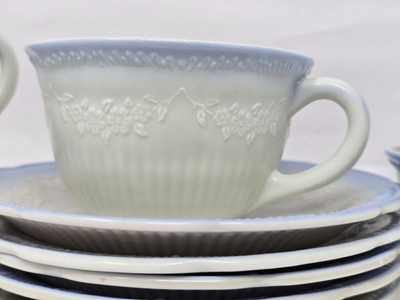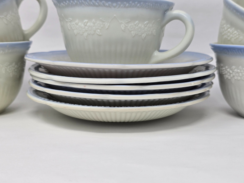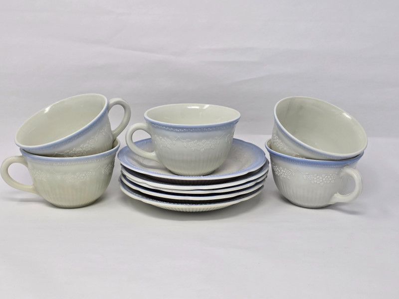 Lot # 103 - Vintage Anchor Hocking Alice Blue – 5-Piece Teacup & Saucer Set