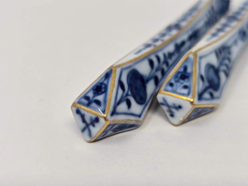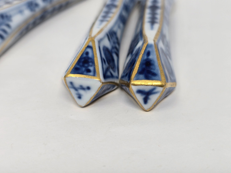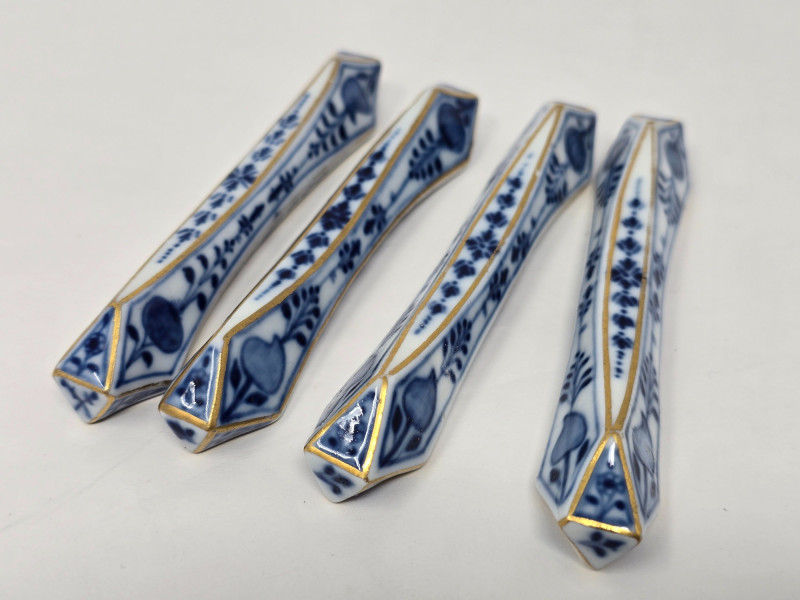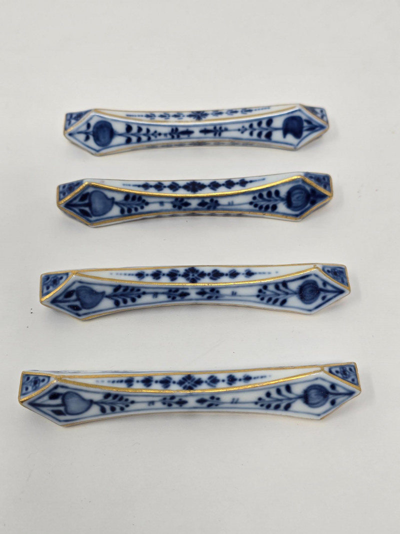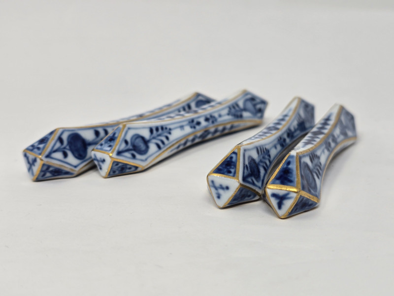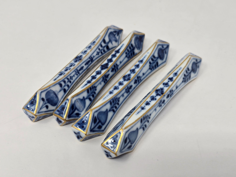 Lot # 110 - Meissen Porcelain Knife Rests – Blue Floral with Gold Trim
