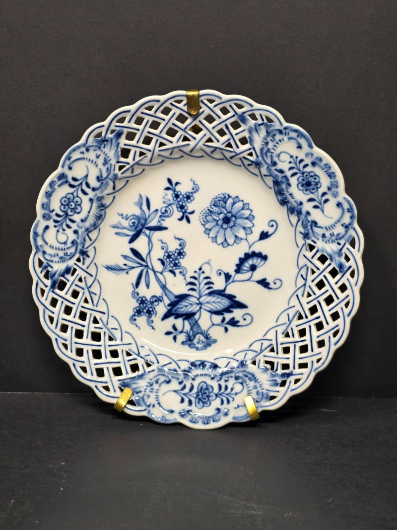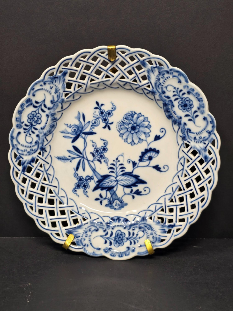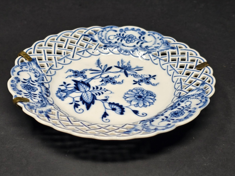 Lot # 115 - Meissen Blue Onion Porcelain Plate with Reticulated Rim- Pre WWII
