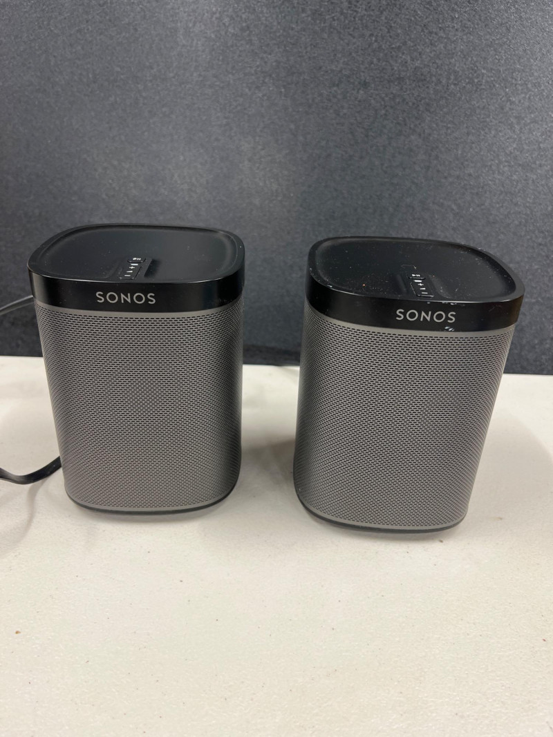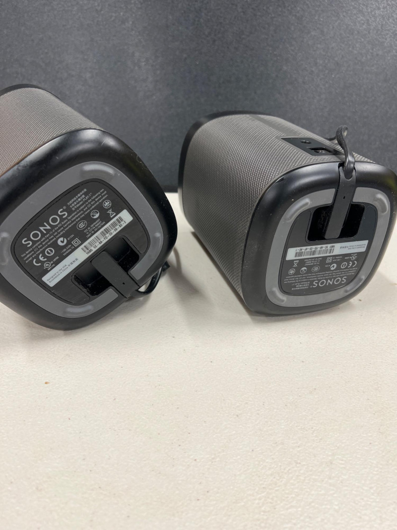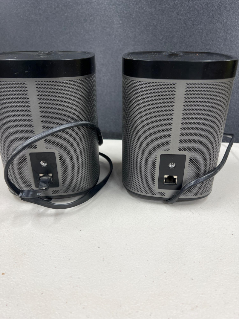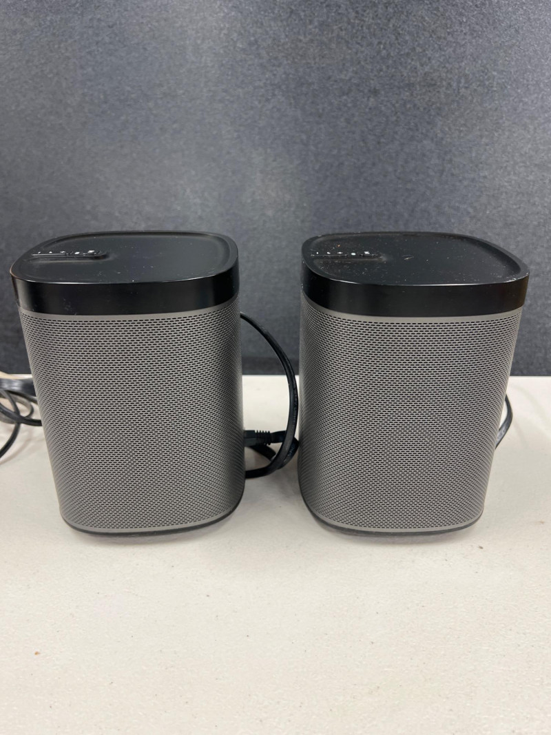 Premium Sonos S100 Play:5 speaker system, engineered for rich, room‑filling sound with wireless convenience. Performance: Delivers deep bass, clear highs, and balanced mids for immersive listening. Utility: Ideal for streaming music, podcasts, or integrating into a Sonos multi‑room audio setup. Connectivity: Wi‑Fi enabled with app control, compatible with major streaming services. Design: Sleek, modern aesthetic that blends seamlessly into home or office environments. Large size: 14.25” L x 6” d x 5” h Medium: 10.5 w x 6.25 d x 5.25 h Small: 8.5” h x 4.25” x 4.25” (Qty: 2)