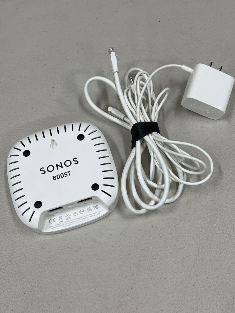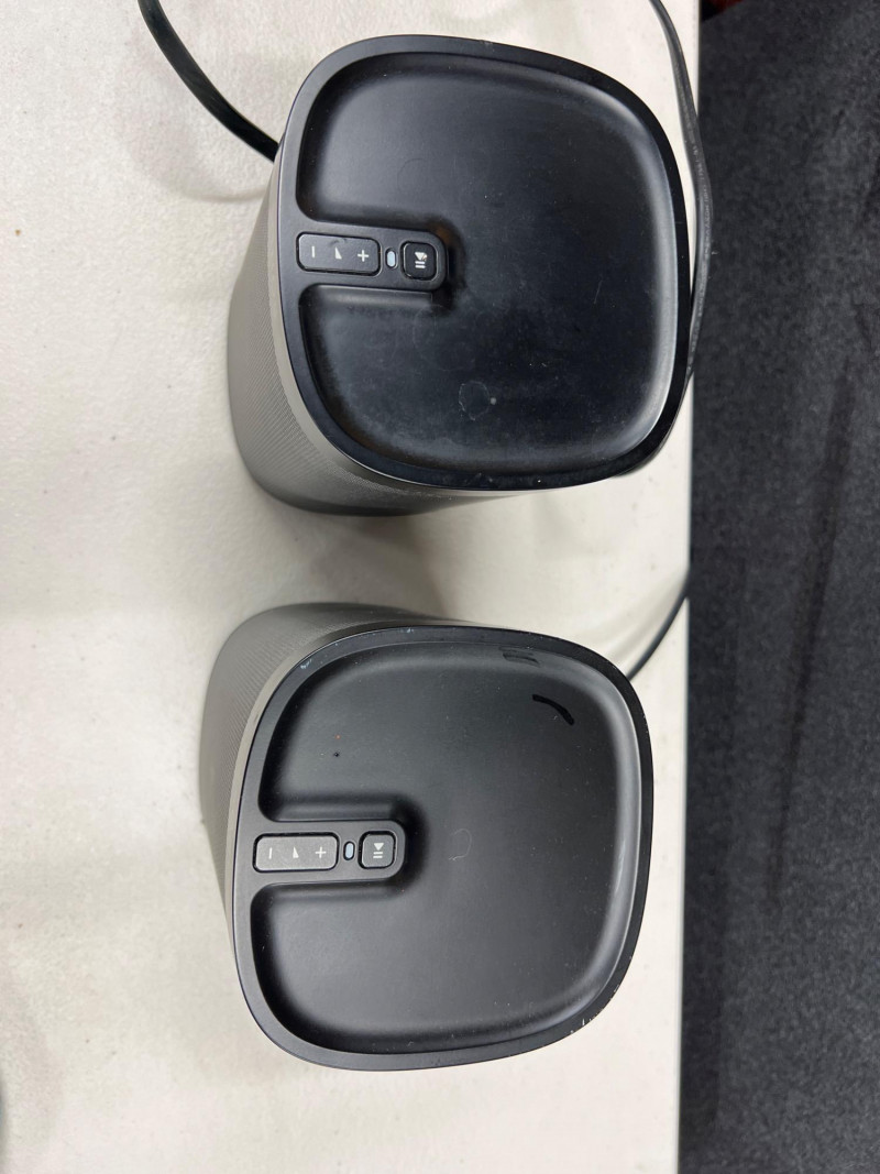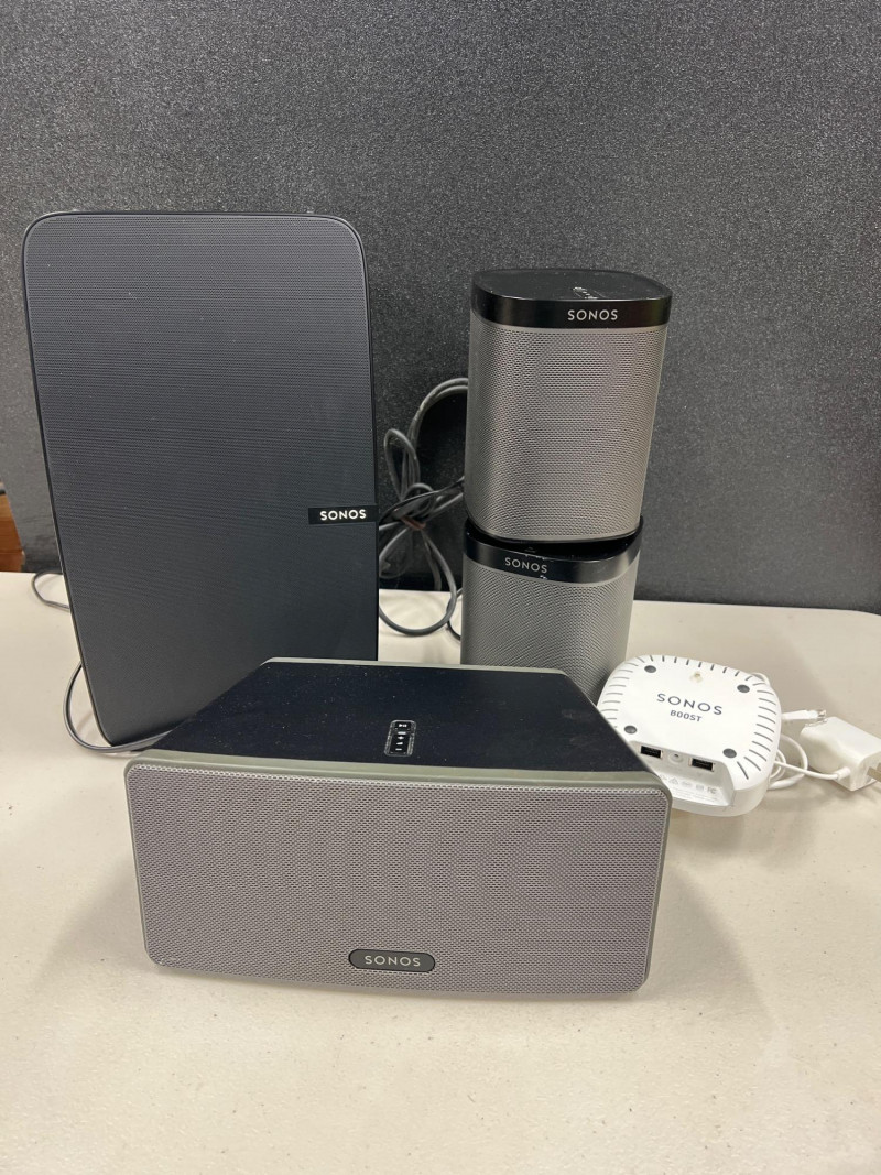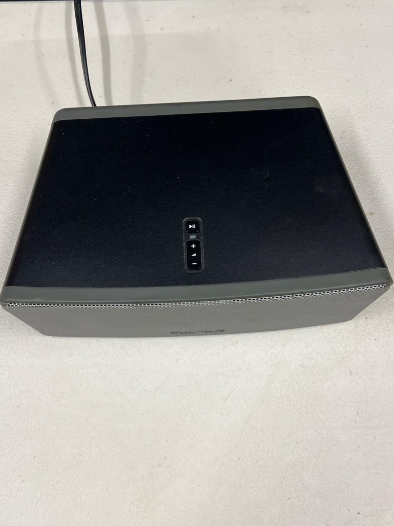 Premium Sonos S100 Play:5 speaker system, engineered for rich, room‑filling sound with wireless convenience. Performance: Delivers deep bass, clear highs, and balanced mids for immersive listening. Utility: Ideal for streaming music, podcasts, or integrating into a Sonos multi‑room audio setup. Connectivity: Wi‑Fi enabled with app control, compatible with major streaming services. Design: Sleek, modern aesthetic that blends seamlessly into home or office environments. Large size: 14.25” L x 6” d x 5” h Medium: 10.5 w x 6.25 d x 5.25 h Small: 8.5” h x 4.25” x 4.25” (Qty: 2)