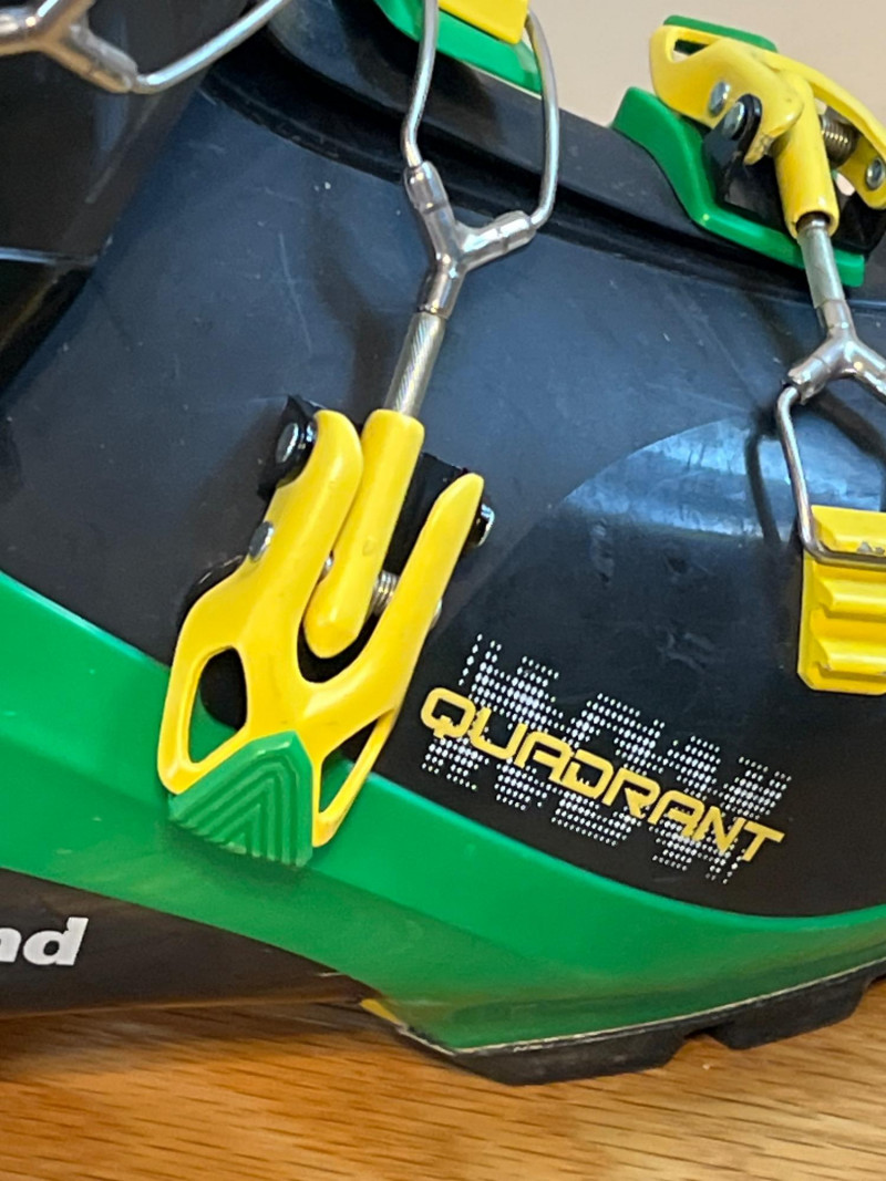 High‑performance Black Diamond Quadrant FL120 men’s alpine touring ski boots, engineered for both uphill efficiency and downhill power. Flex Rating: 120 – stiff, responsive flex for aggressive freeride skiing. Size: 29.5 Mondopoint (approx. US Men’s 12). Design: Four‑buckle overlap construction with thermoformable Efficient Fit liner for customizable comfort. Touring Performance: 40° cuff articulation in walk mode for natural stride when skinning uphill. Downhill Control: Progressive alpine flex capable of driving skis 95mm and wider. Utility: Ideal for backcountry skiers seeking a balance of lightweight touring mobility and downhill stability. Condition: Functional; sold as‑is.