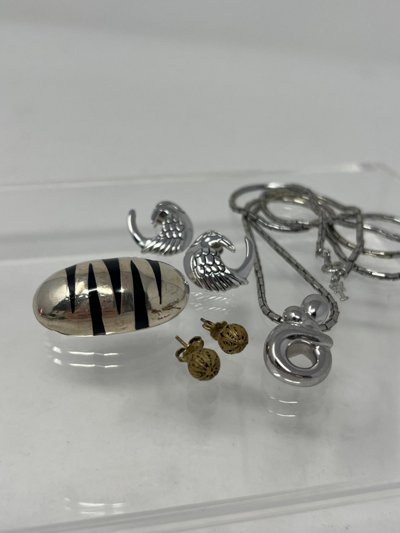 Lot # 11 - GMH 925 Brooch, Birth Pendant, Myna Bird Earrings & Filigree Studs