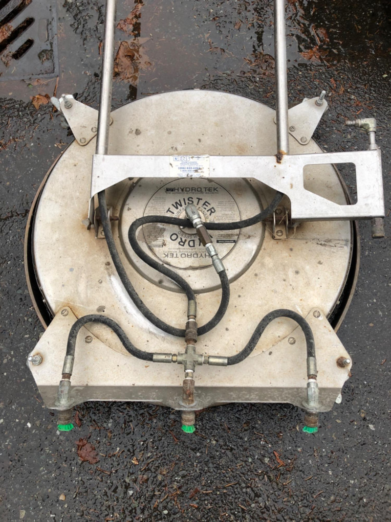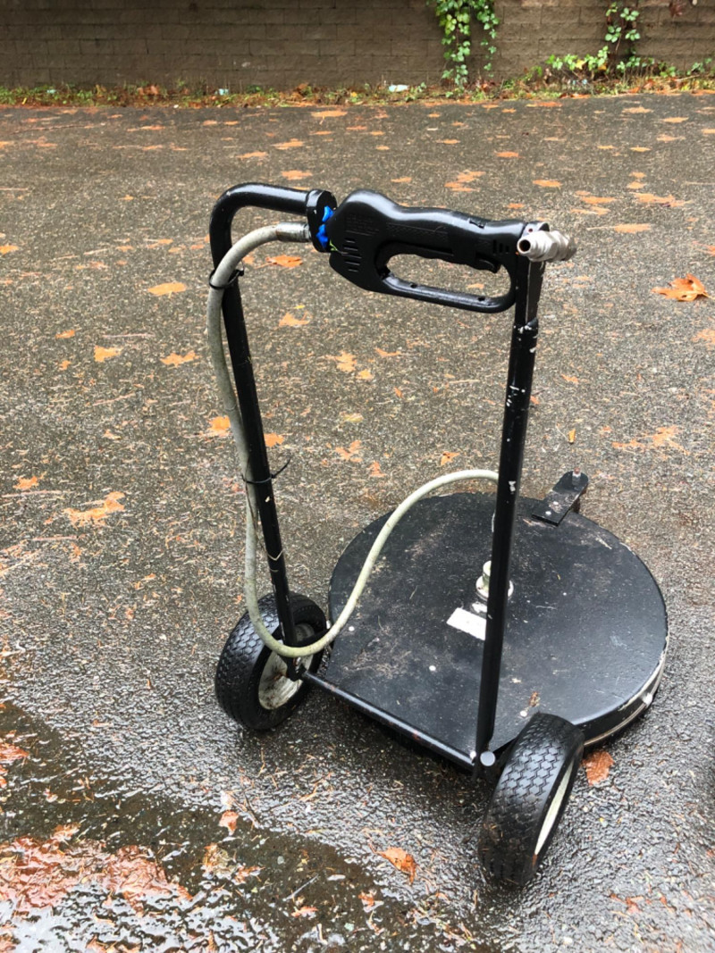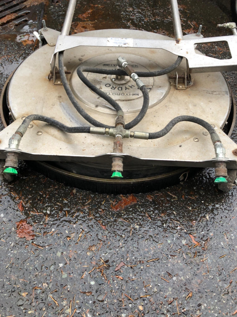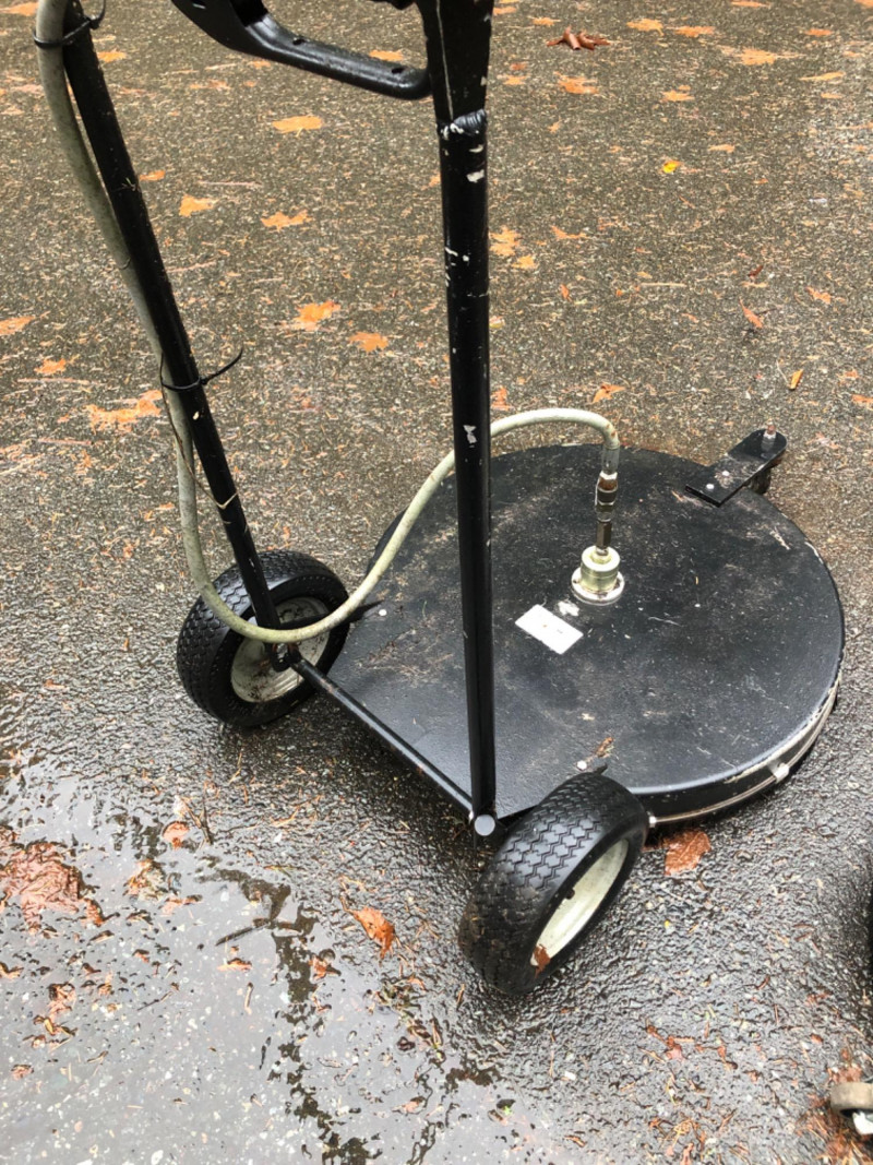 Pair of large pressure washer deck scrubbers, each with a 27‑inch radius cleaning area. Designed for contractor and industrial use, these scrubbers provide efficient, wide‑coverage cleaning for decks, patios, driveways, and shop floors. Durable construction ensures reliable performance under heavy use. Ideal for contractors, facilities maintenance, and large‑scale cleaning projects requiring speed and consistency. At retail these decks typically cost $300 - $500 each.