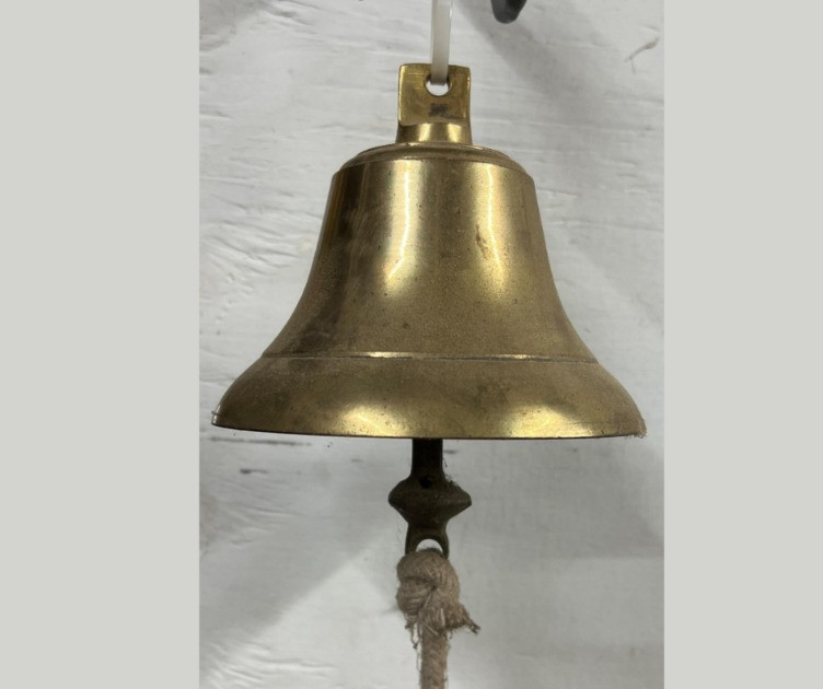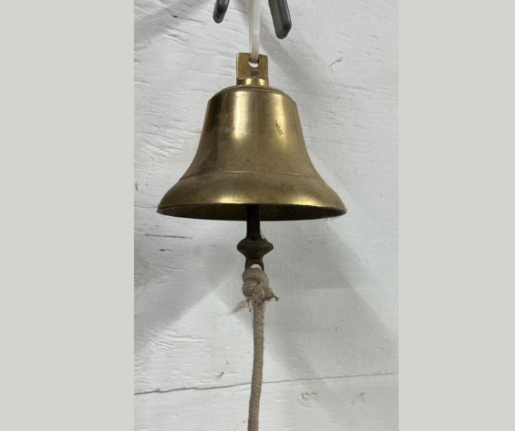 Classic brass bell, crafted in durable metal with a warm golden finish. Design: Traditional form with smooth surface and resonant tone. Utility: Suitable as a decorative accent, collectible piece, or functional bell for indoor or outdoor use. Appeal: Adds vintage charm to nautical, farmhouse, or eclectic décor.