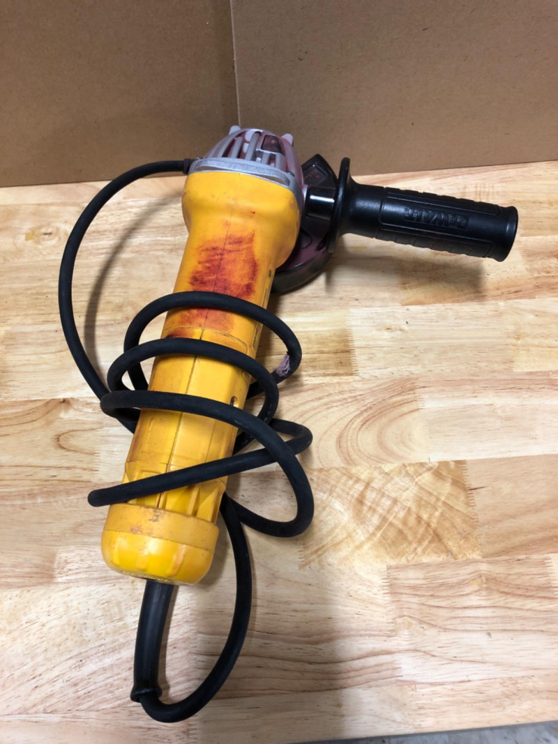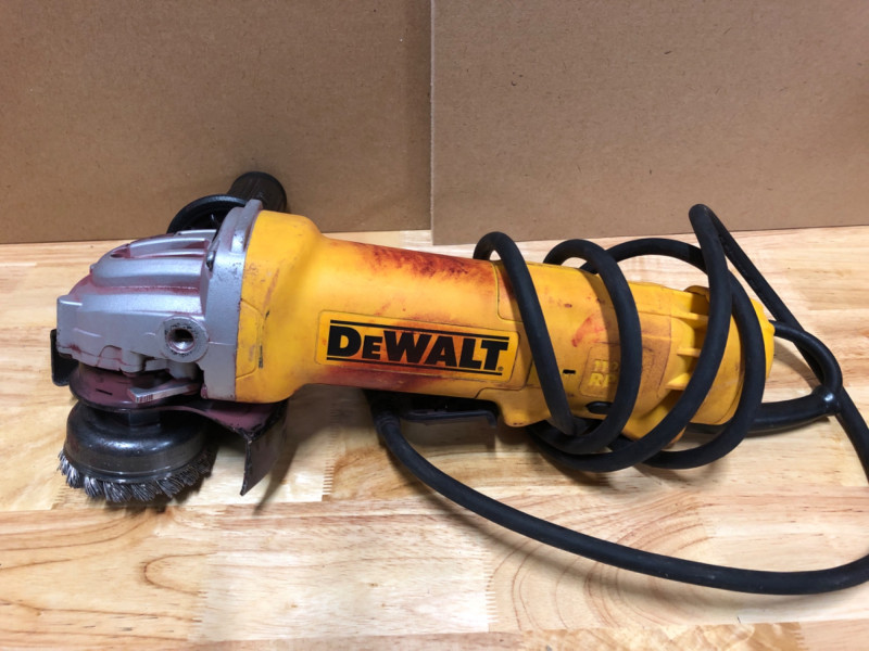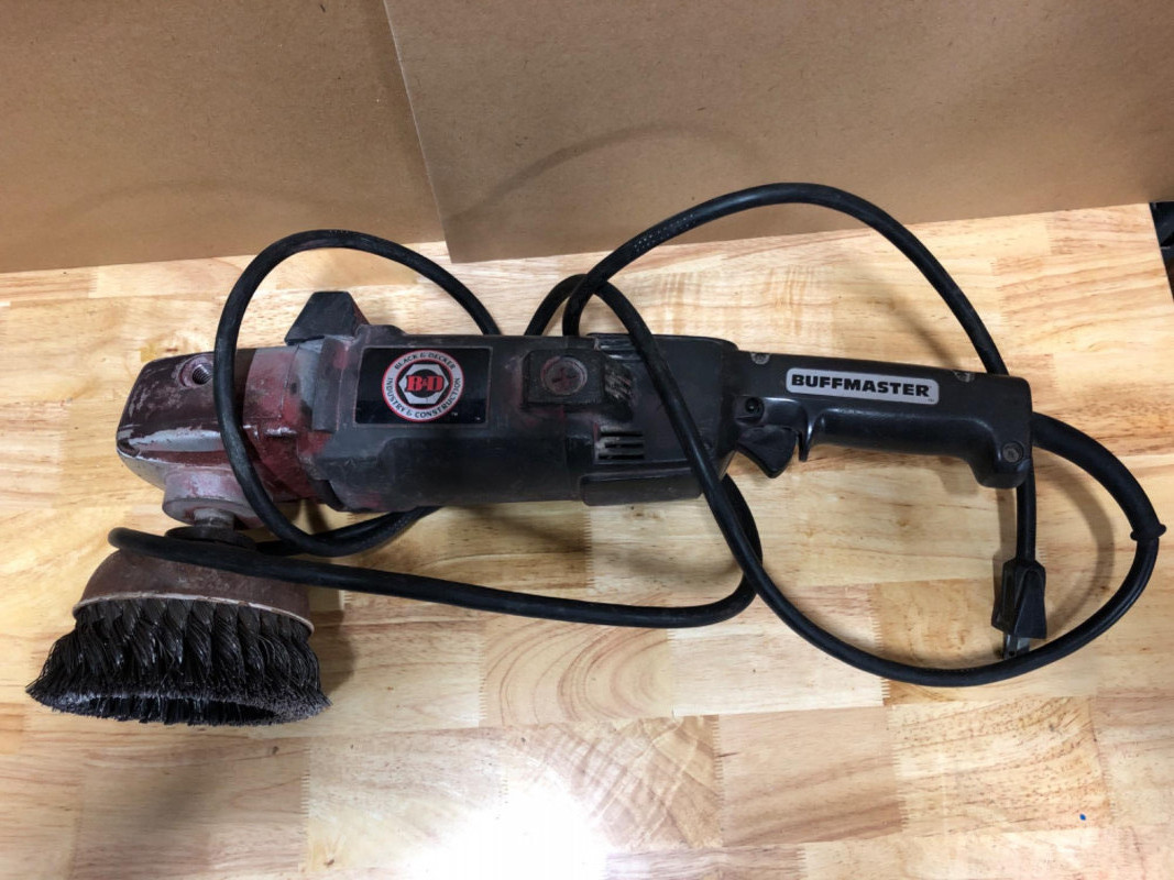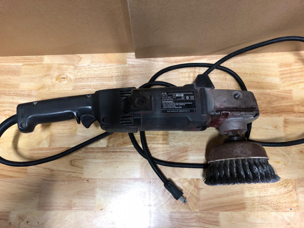 Two professional‑grade contractor tools: DeWalt DWE402 Angle Grinder – 4‑1/2" (11 Amp) model, designed for heavy‑duty grinding and cutting. Features DeWalt’s Dust Ejection System™ for durability and extended tool life. Black & Decker Buffmaster 6138 Polisher – 7"/9" electronic sander/polisher, built for precision buffing and polishing applications. Known for its rugged design and reliable performance. Accessories: Eight new cup wire brushes included, expanding utility for surface prep and cleaning tasks. Both tools power on and are suitable for contractor, mechanic, or shop projects requiring grinding, polishing, or finishing.