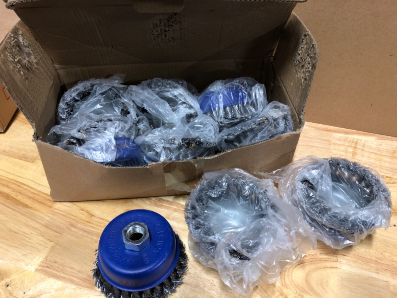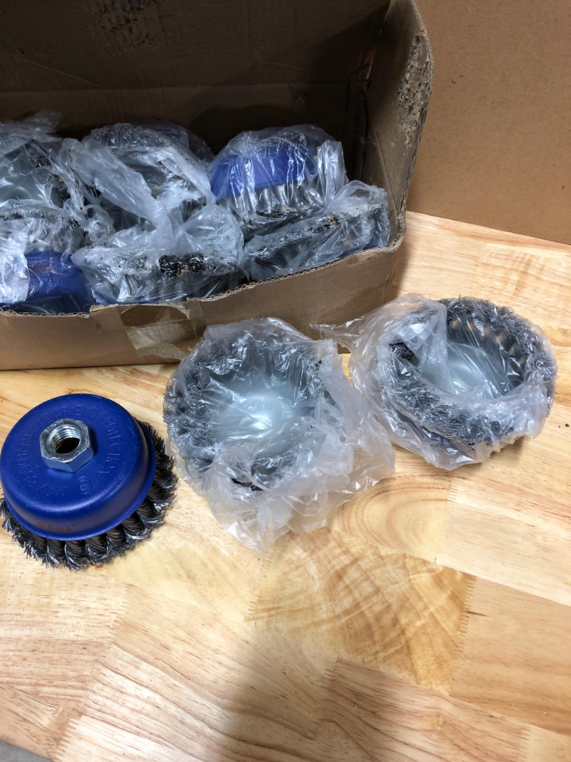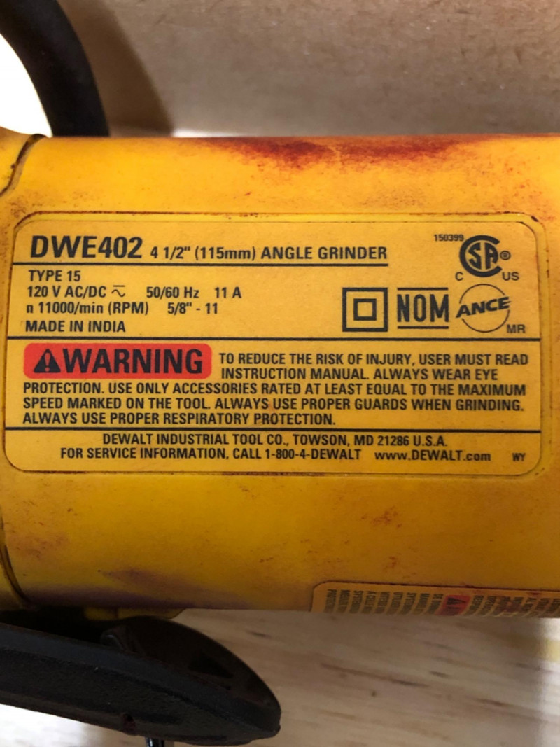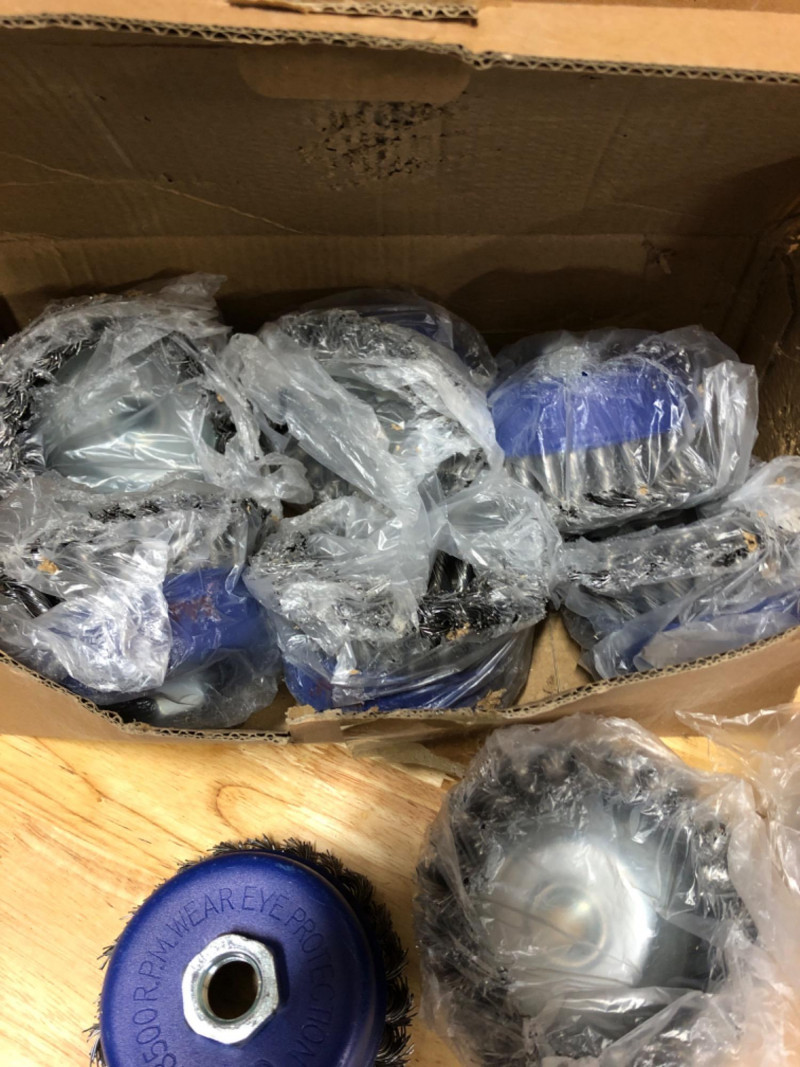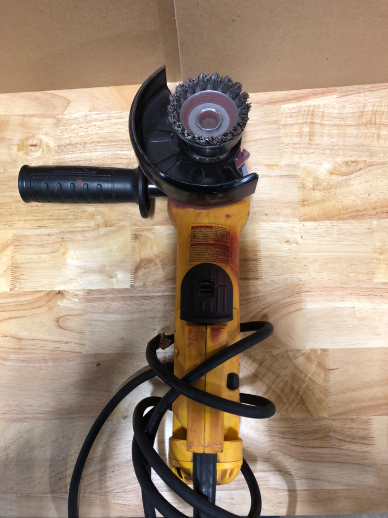 Two professional‑grade contractor tools: DeWalt DWE402 Angle Grinder – 4‑1/2" (11 Amp) model, designed for heavy‑duty grinding and cutting. Features DeWalt’s Dust Ejection System™ for durability and extended tool life. Black & Decker Buffmaster 6138 Polisher – 7"/9" electronic sander/polisher, built for precision buffing and polishing applications. Known for its rugged design and reliable performance. Accessories: Eight new cup wire brushes included, expanding utility for surface prep and cleaning tasks. Both tools power on and are suitable for contractor, mechanic, or shop projects requiring grinding, polishing, or finishing.