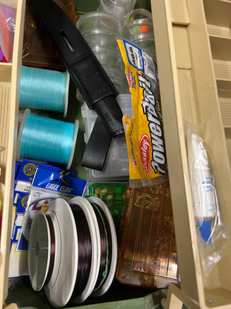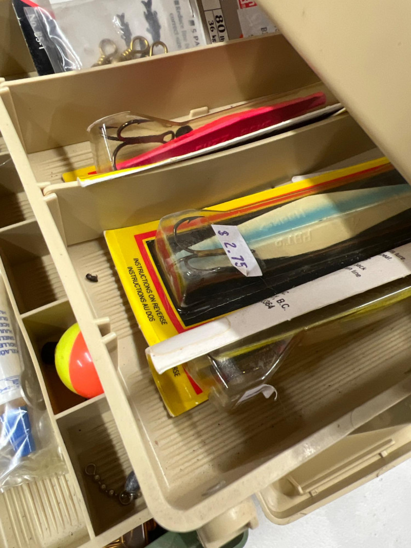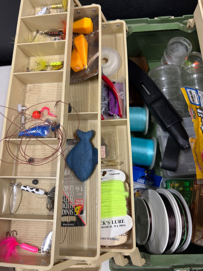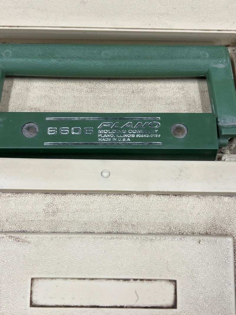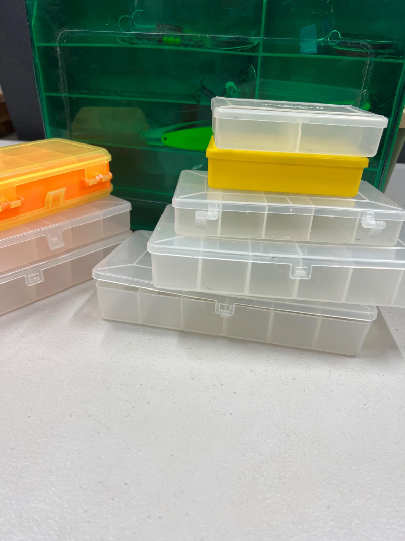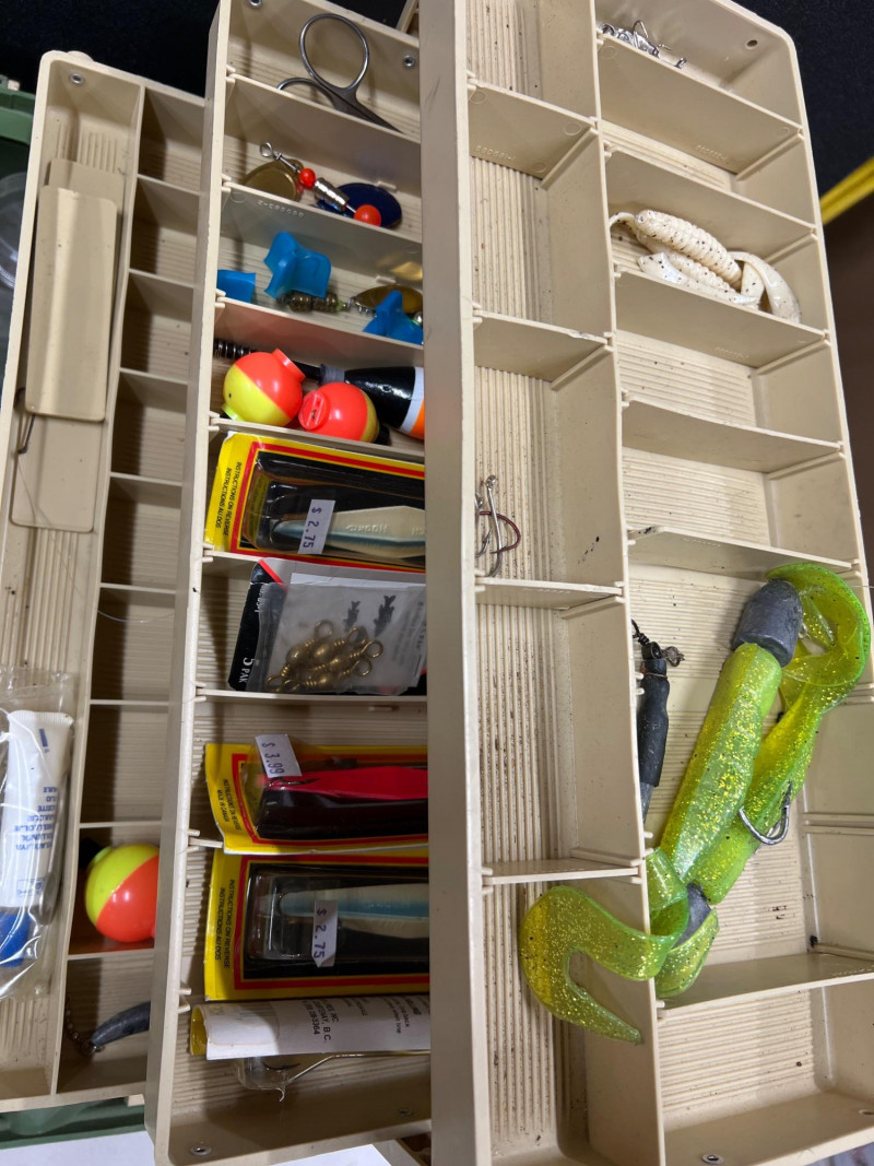 Complete Plano multi‑tray fishing tackle box paired with a double‑sided satchel (12" x 8" x 4"), both stocked with assorted gear. Plano Multi‑Tray Box: Durable hard‑shell design with tiered trays for organized storage of lures, hooks, and accessories. Double‑Sided Satchel: Compact, portable case with dual compartments for quick access to tackle. Contents: Stocked with a variety of fishing essentials (lures, hooks, weights, and more). Utility: Perfect for anglers seeking ready‑to‑fish organization and reliable storage solutions. Condition: Stocked and functional; sold as‑is.