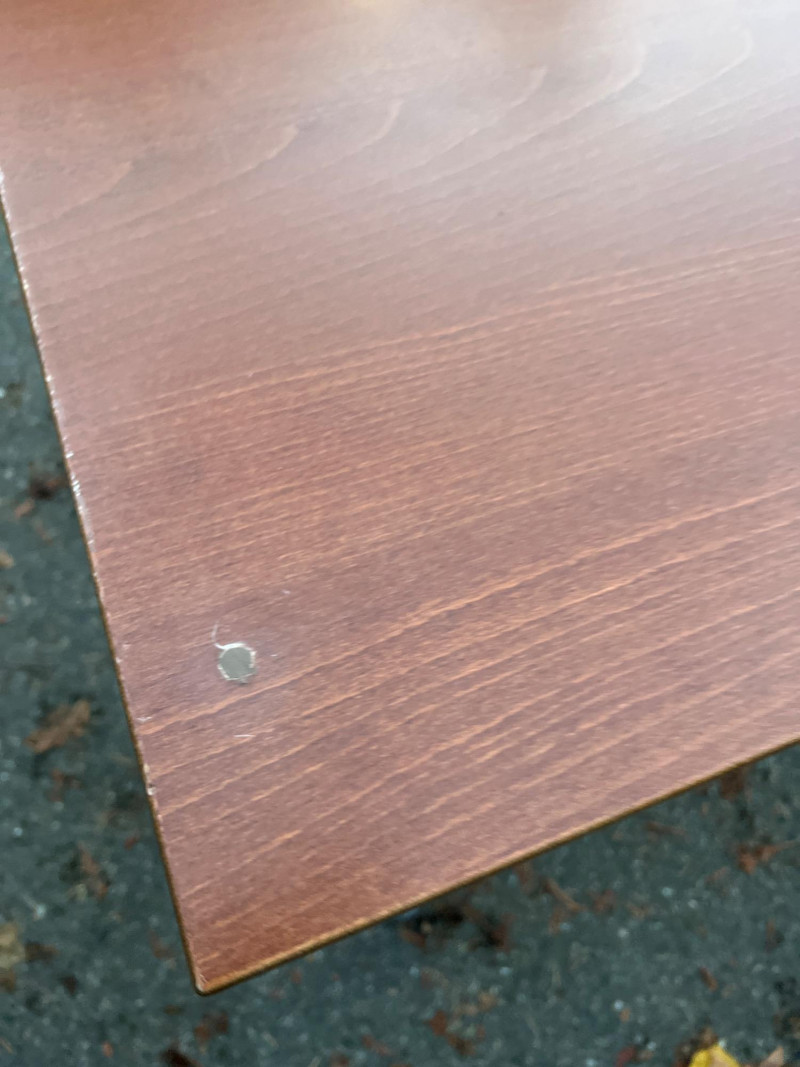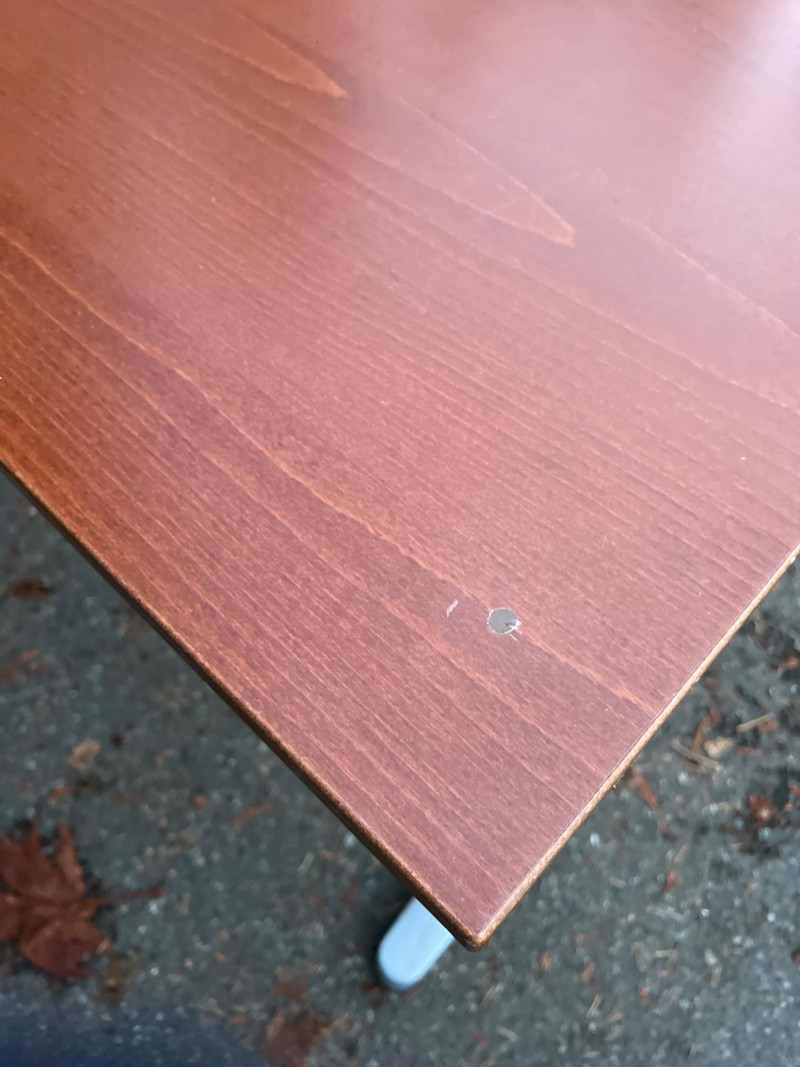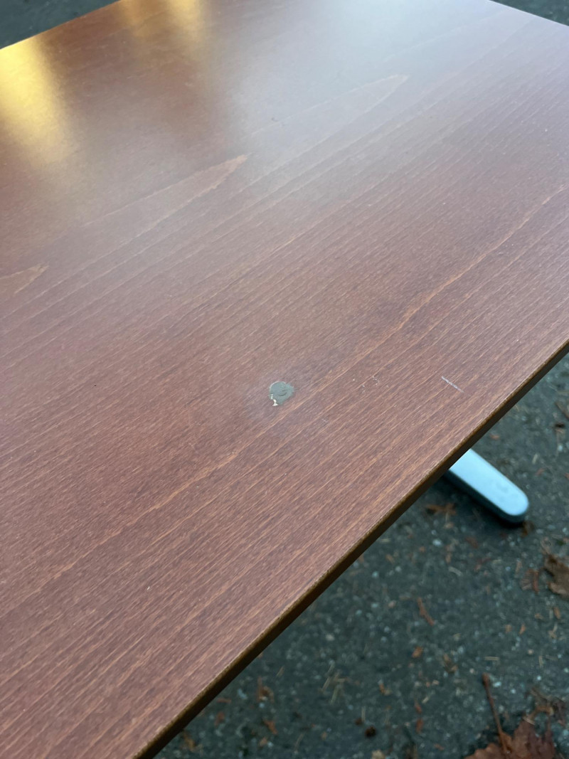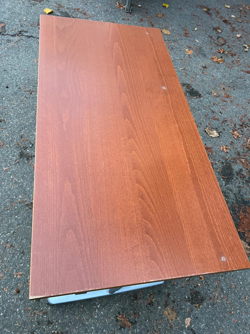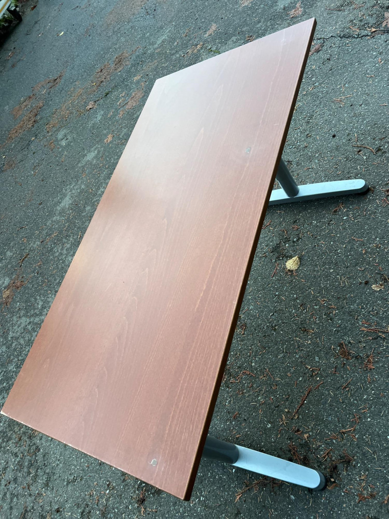 Modern Herman Miller style desk with adjustable wood top, designed for both function and aesthetic appeal. Dimensions: 47.25" L × 28" W × 23‑5/8" H. Design: Sleek wood top paired with a sturdy adjustable frame for ergonomic comfort. Utility: Ideal for home office, studio, or professional workspace. Features: Adjustable height for customized use; durable construction with clean, minimalist styling. Condition: Solid and functional; note three filled holes in desktop, sold as‑is.