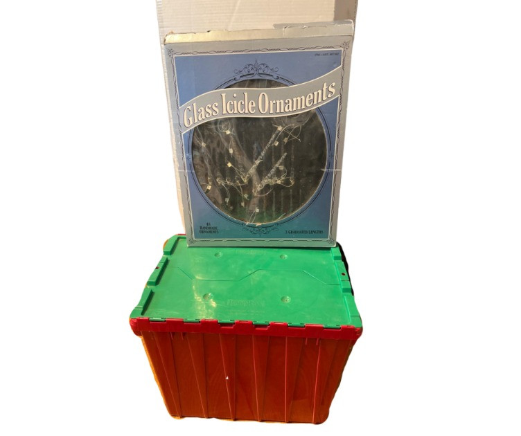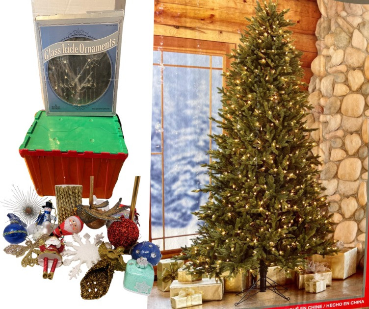 A delightful mix of treasures that feel plucked from a storybook shelf. This bin includes both revealed and unrevealed tissue-wrapped ornaments. Bin is included. Additionally, a box of crystal style icicles and an in box 7.5 foot tall pre-lit articial Christmas tree. Just in time for the holidays. Charm & Whimsy: Each piece carries a touch of sparkle and nostalgia. Collectible Appeal: Perfect for those who love small wonders and decorative accents. Utility: Display as conversation pieces, gift to kindred spirits, or tuck away as keepsakes.