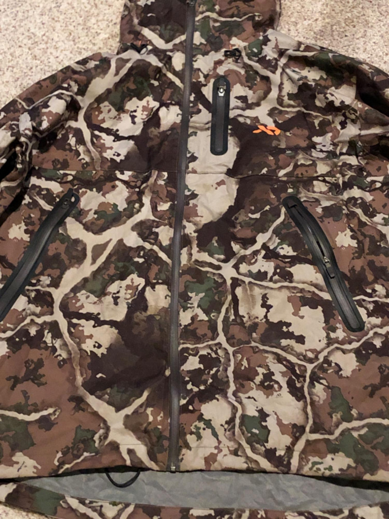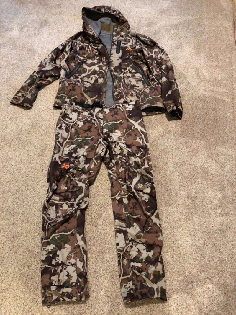 A premium First Lite hunting jacket and bib set in the Fusion camouflage pattern, size 2X. Built for serious hunters, this set features PrimaLift Gold synthetic insulation for warmth without bulk, ensuring comfort in cold conditions. The bibs include full‑length zippers, allowing easy on/off over boots and layering flexibility in the field. Designed for durability, concealment, and performance, this set delivers the protection and mobility needed for extended hunts in rugged terrain.
