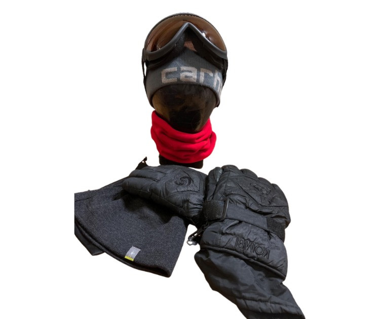 A cold‑weather gear set designed for comfort and performance on the slopes or in the backcountry. This lot includes a pair of Scott ski goggles for clear vision in snowy conditions, a Carhartt beanie for head warmth, and a Smartwool beanie for breathable and dry comfort. Also featured is a Turtle Fur neck warmer, offering soft insulation against wind and cold, and a pair of Kombi snow gloves with leather palms, built for durability and grip. Together, these essentials provide reliable protection and style for winter sports and outdoor adventures.