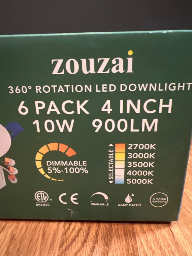 Bring professional-grade lighting into your home or workspace with this 6-pack of ZouZai 4-inch LED recessed gimbal downlights. Each fixture delivers a bright 900 lumens while consuming only 10 watts, offering energy efficiency without sacrificing illumination. Designed for versatility, these lights feature 360° horizontal rotation and 90° vertical tilt, making them ideal for accent walls, sloped ceilings, or highlighting artwork. The 5 selectable color temperatures (2700K–5000K) allow you to tailor the ambiance from warm and cozy to crisp daylight. Certified ETL and Energy Star, these downlights ensure safety and efficiency. They are fully dimmable with compatible LED dimmers and include a junction box for easy installation. Perfect for kitchens, living rooms, galleries, or commercial spaces where adjustable, modern lighting makes all the difference.