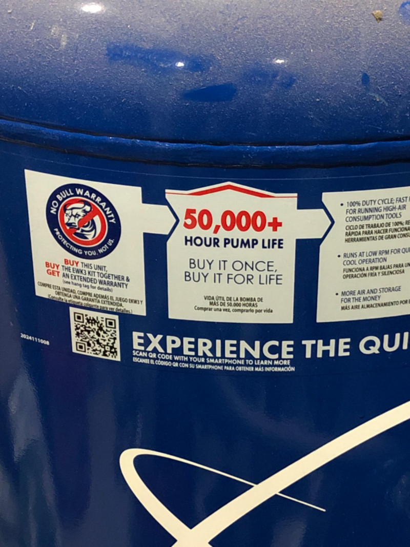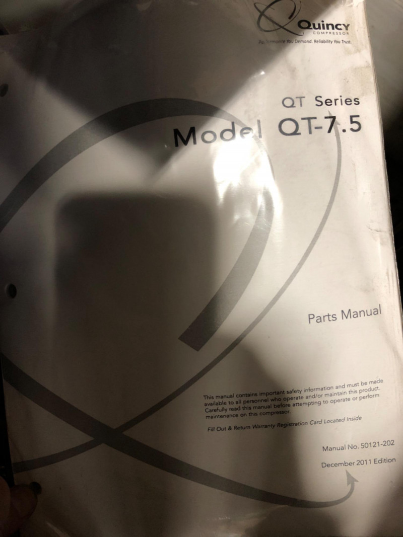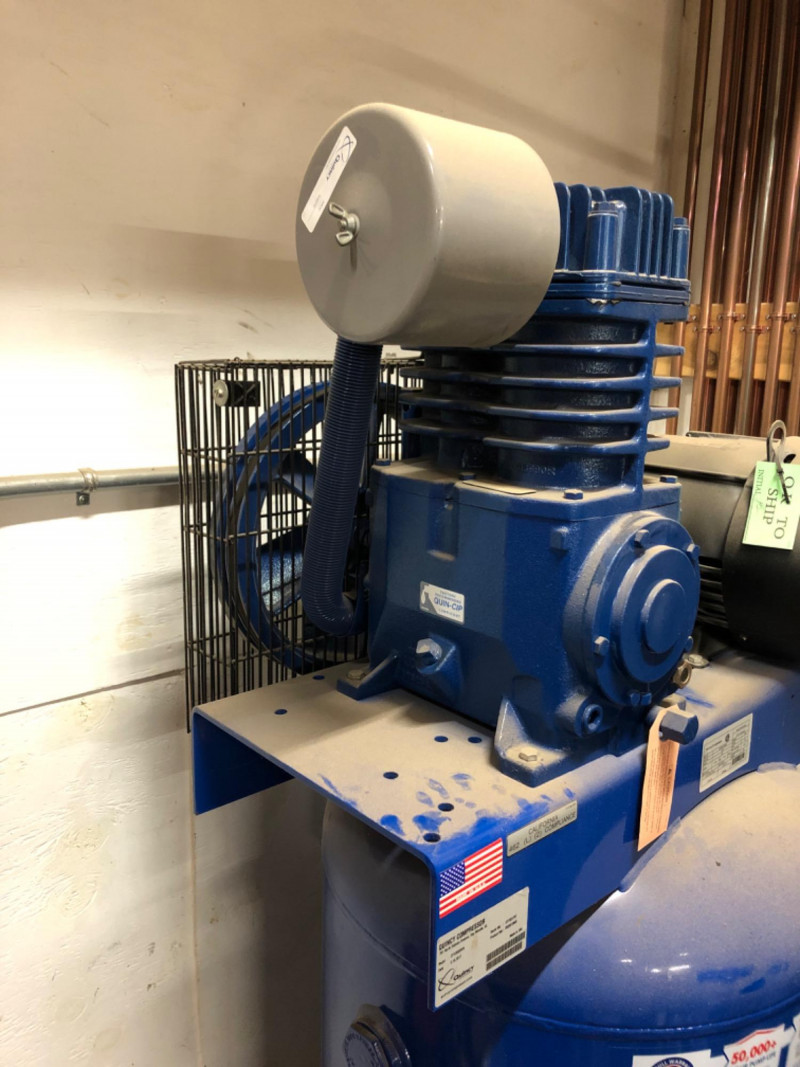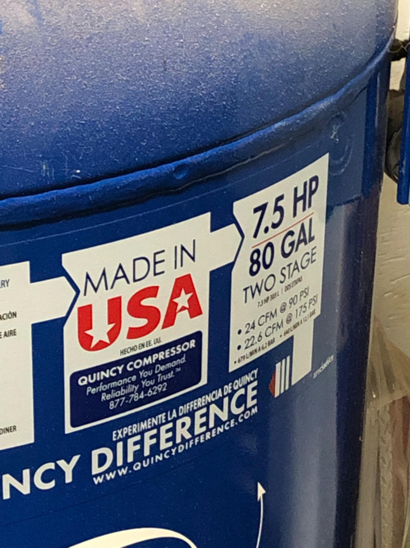 Quincy Model 271CS80VCB QT‑7.5 air compressor, a professional‑grade 7.5 horsepower, 80‑gallon vertical tank, two‑stage unit. Built for heavy‑duty contractor and industrial applications, this compressor delivers 23 CFM at 175 PSI with a 100% duty cycle. Features include: Splash‑lubricated, cast‑iron pump for durability and dependability High‑efficiency finned intercooler to reduce air temperature and improve performance 1725 RPM industrial motor for continuous operation ASME‑coded tank and safety valves for compliance and reliability Extra oil capacity for cooler running and extended pump life (50,000+ hours) Proudly built in the U.S.A. with a generous factory warranty Ideal for shops, contractors, and industrial environments requiring consistent, high‑capacity compressed air.