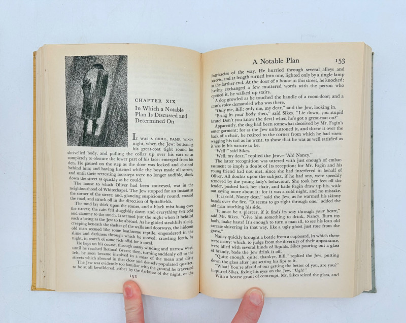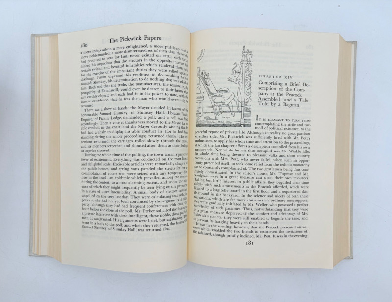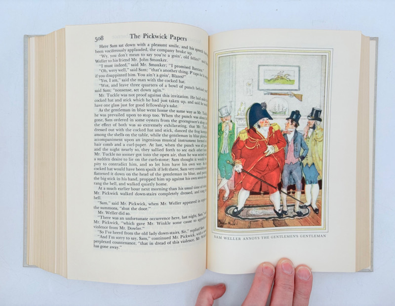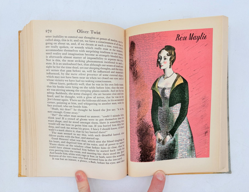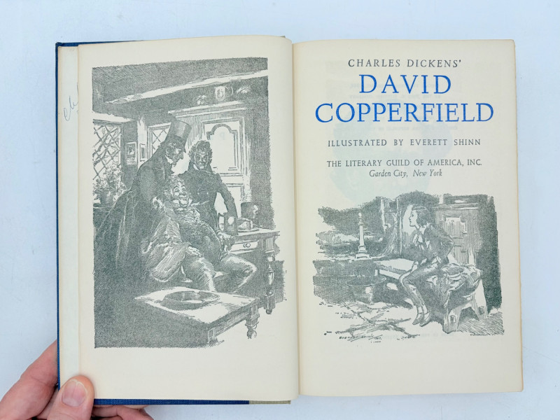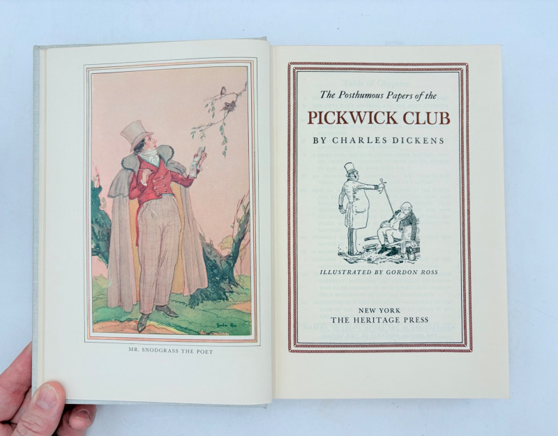 5 fabulous volumes of Charles Dickens' incredible writing - they will leave you saying "Please, sir, I want more." 3 of the volumes are from Heritage Press which existed from 1937 - 1982 and published almost exclusively classics in literature, history, and the like. There were usually terrific illustrations and elegant covers that were lovely without being overly precious. David Copperfield (Charles Dickens) 1948. Literary Guild of America, Garden City, NY. 423 p. Owner's name on inside cover. Adventures of Oliver Twist (Dickens) 1939. Heritage Illustrated Bookshelf, New York. 431 p. Inscription on front fly page. The Pickwick Papers (Charles Dickens) 1938. Heritage Press, New York. 764 p. Owner's name on inside cover.