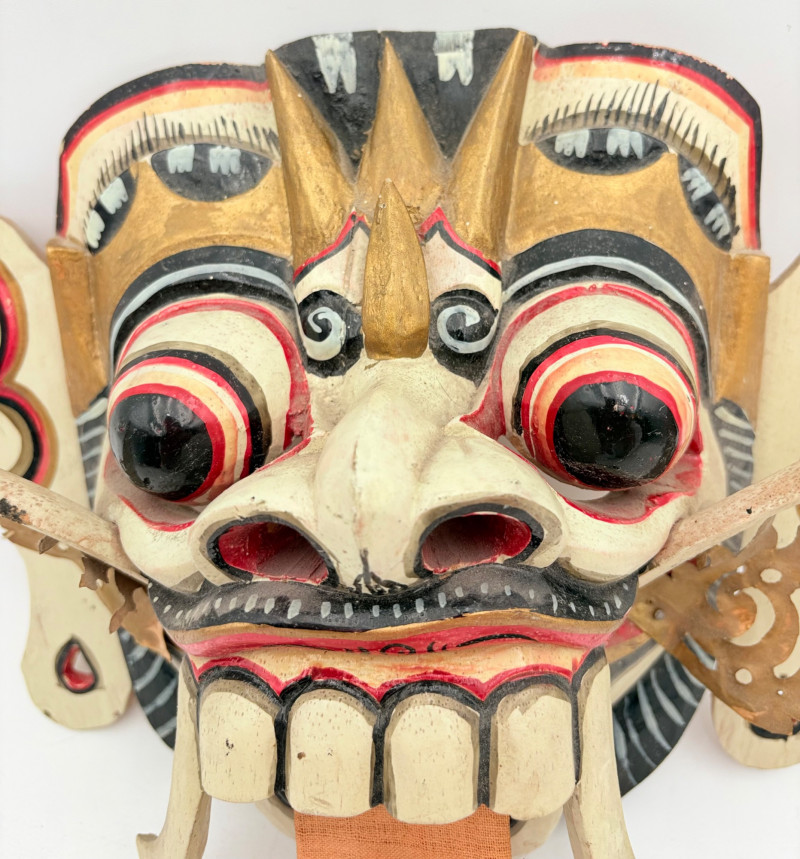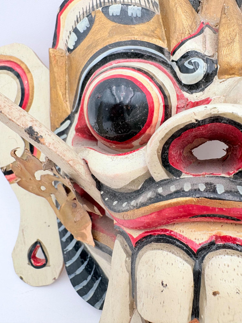 Lot # 21 - Vintage Indonesian Hand-Carved Rangda Mask + Bonus
