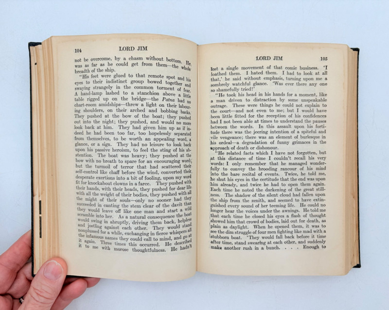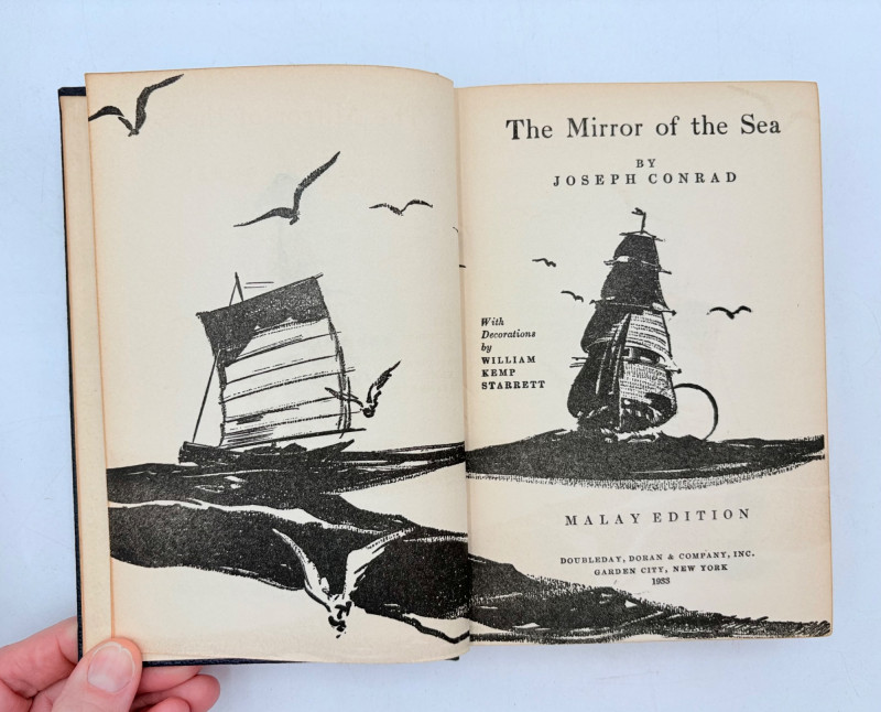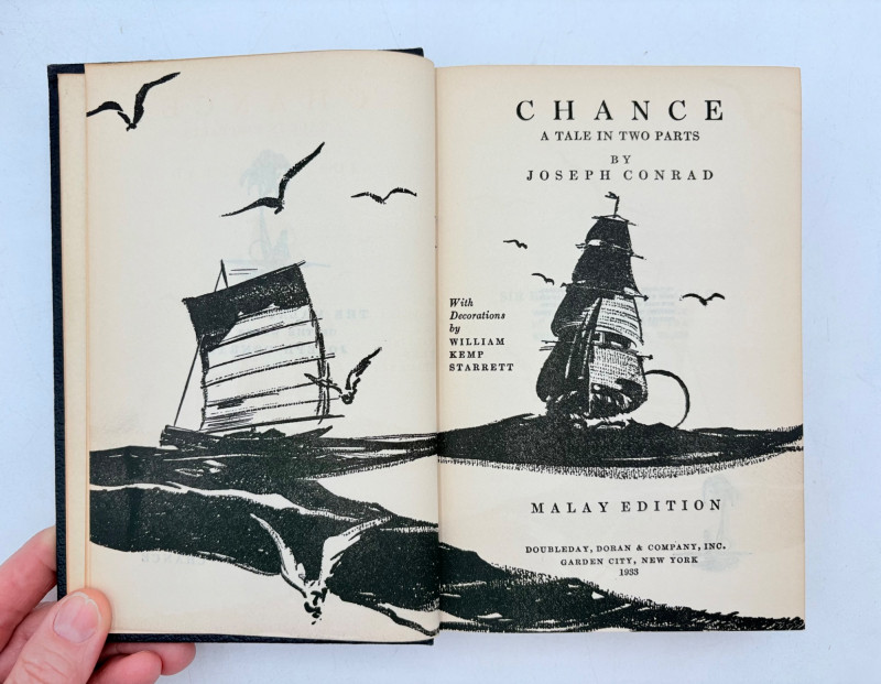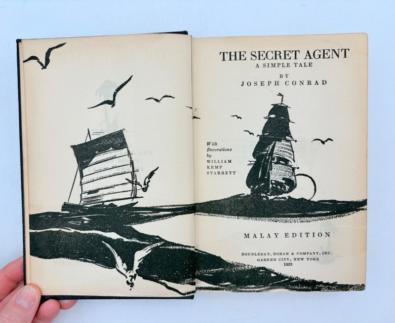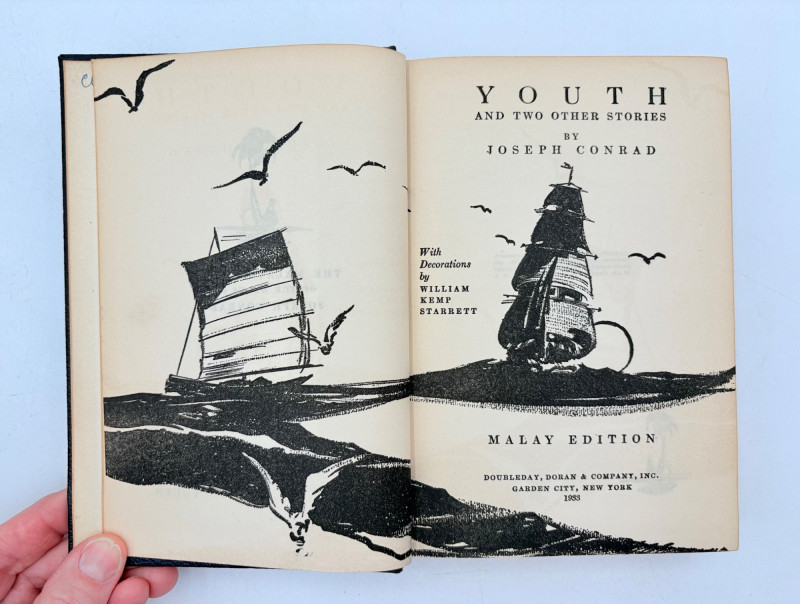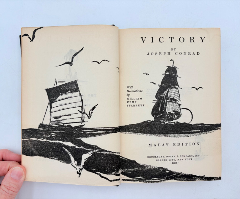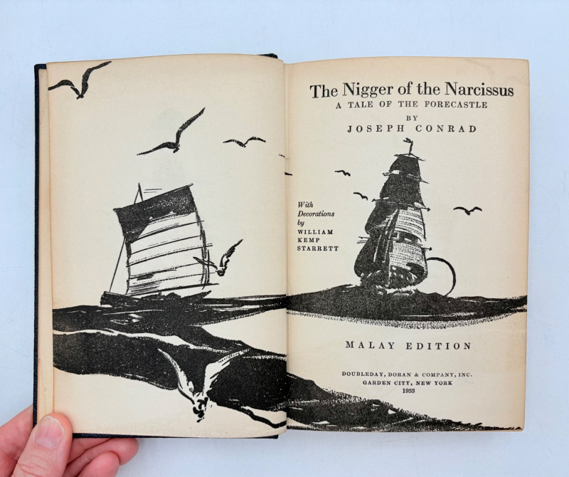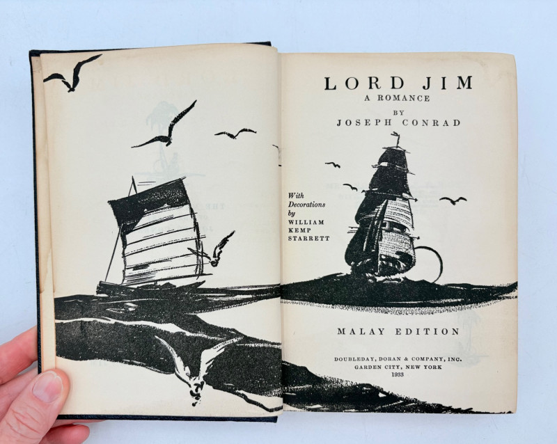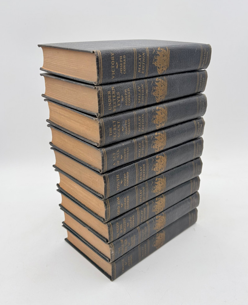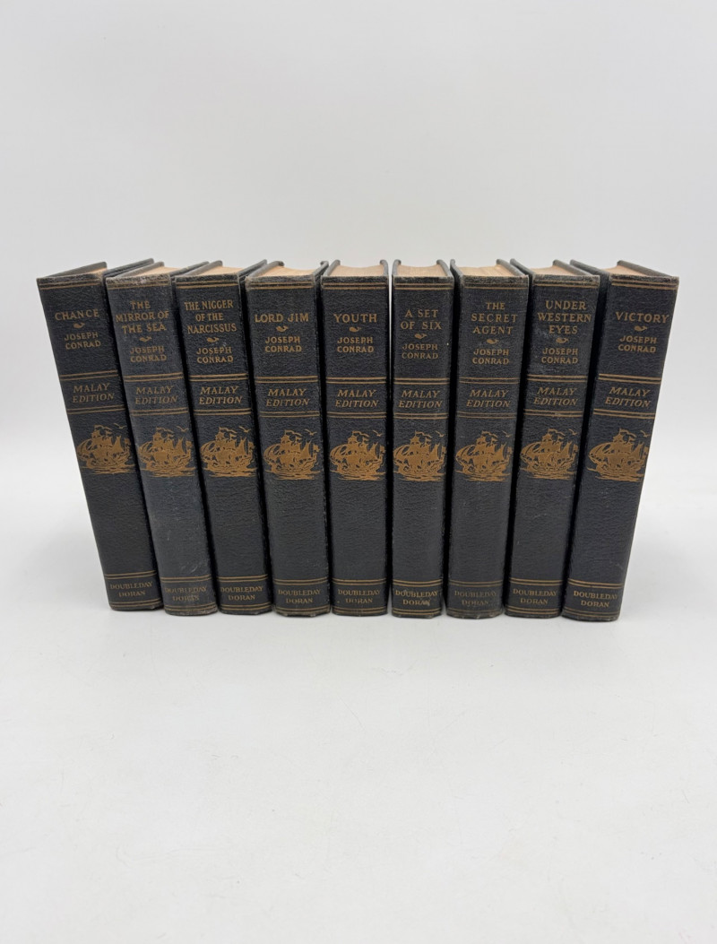 Great stories by Joseph Conrad, best known today for his story "Heart of Darkness" which was reimagined in/inspired the movie "Apocalypse Now". Here are many of his lesser known works in 9 volumes. These books are from 1933 and were published by Doubleday, Doran & Co. in Garden City, NY. They have the owner's name on the front inside cover and most have written inscriptions to the owner on the fly page. - Chance - The Mirror of the Sea - The Nig*er of the Narcissus - Lord Jim - The Secret Agent - Youth - A Set of Six - Victory - Under Western Eyes The Malay Edition of the Works of Joseph Conrad - 10 volumes, 1933 | eBay for sale elsewhere - we have one less volume