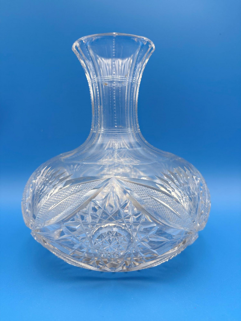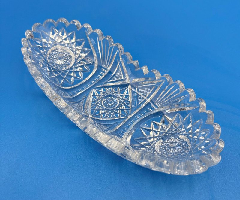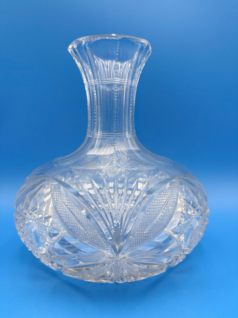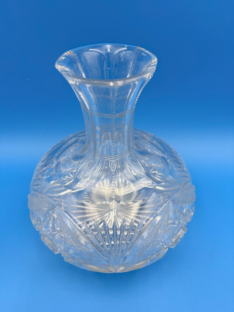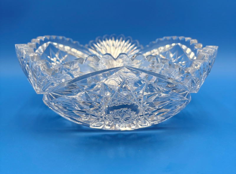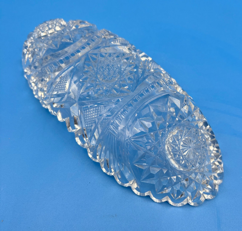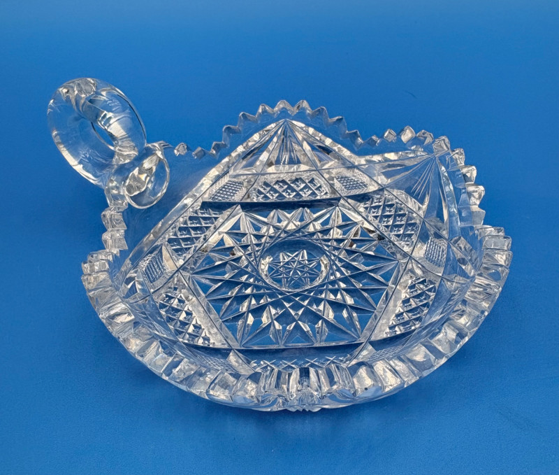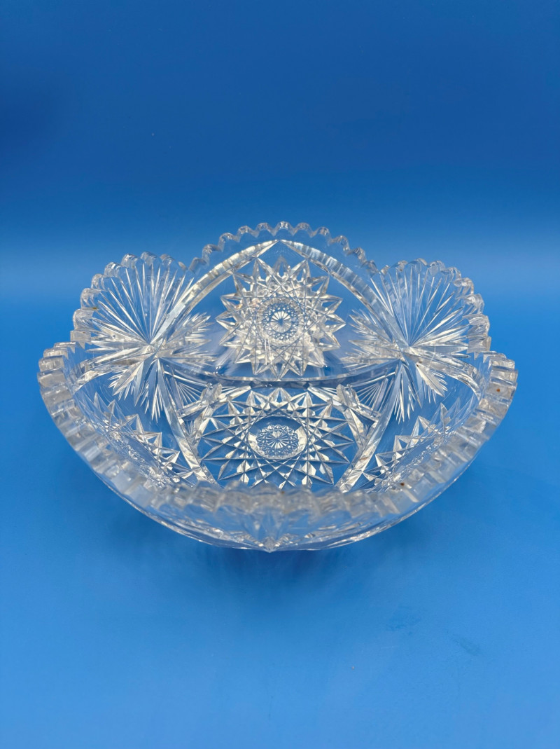 We believe these 6 pieces are American Brilliant Period crystal and are thus antique. They have that distinctive "ping" and are quite heavy with no noticeable flaws. Included in the lot are: Sugar bowl (3" H) Creamer (3" H) Serving bowl (8" W) Carafe (7" H x 7" W) Butter dish (3.25" W x 7.75" L) Handled small round dish (5" W)