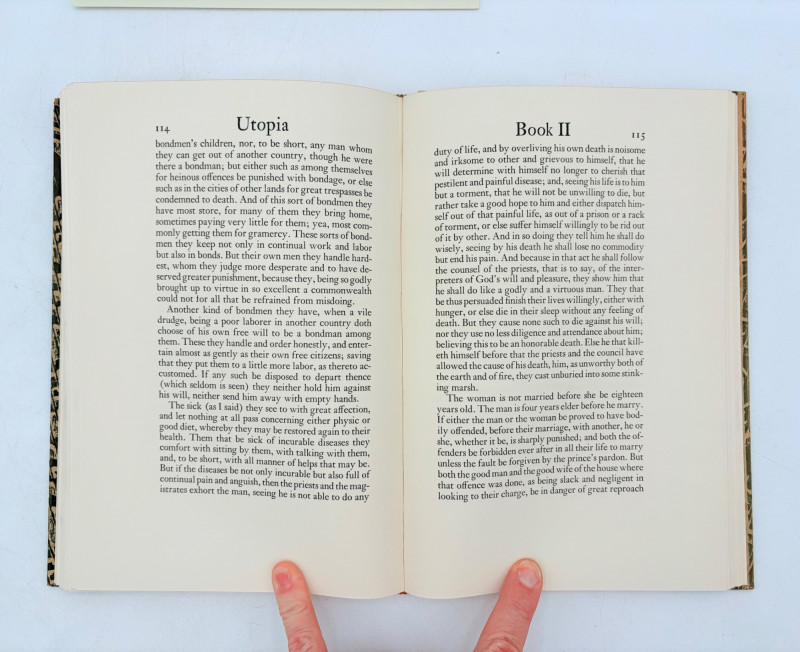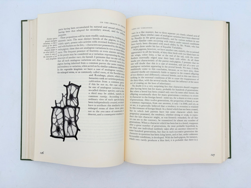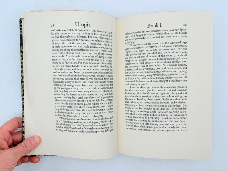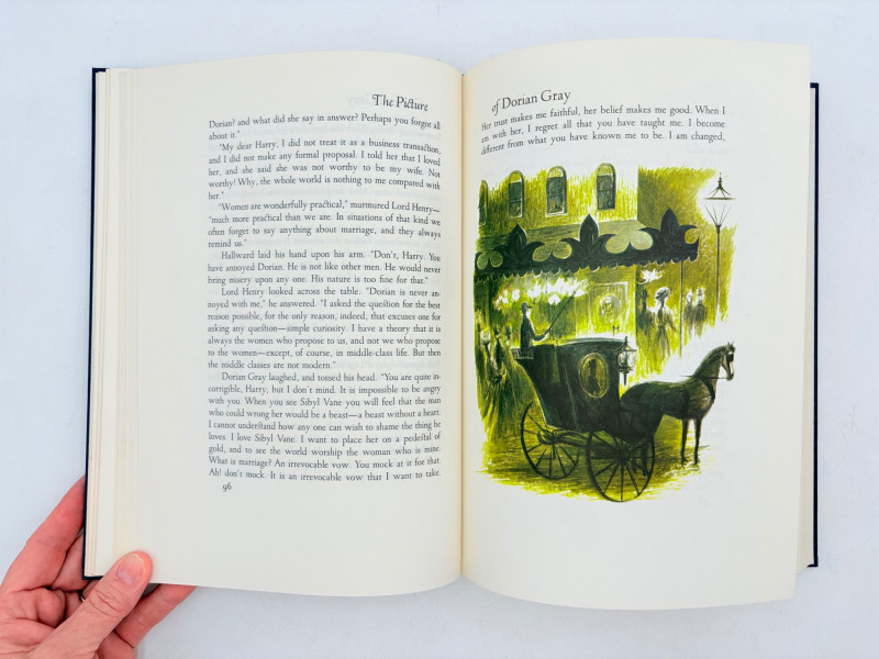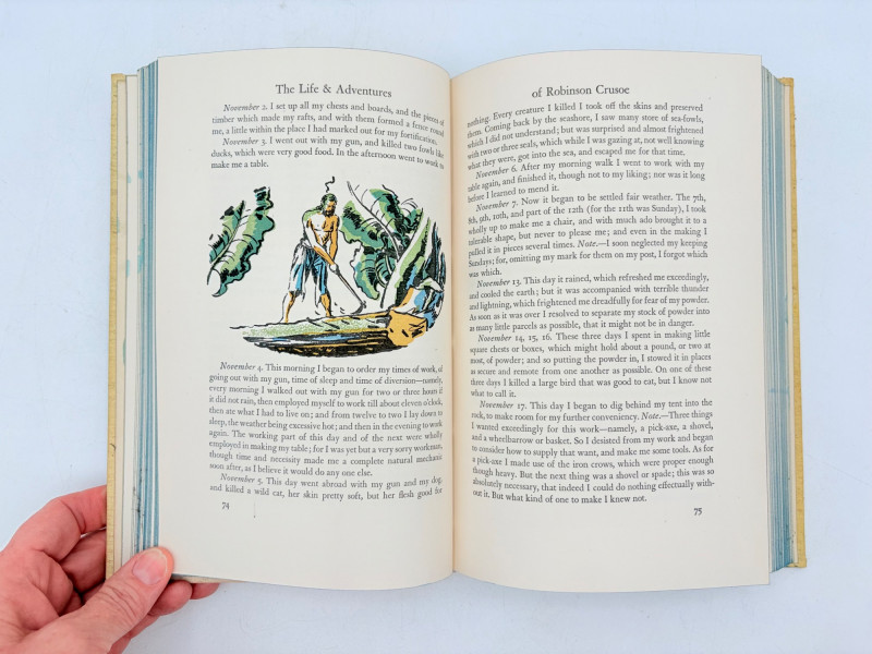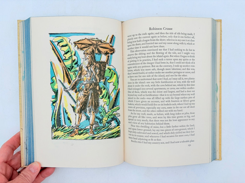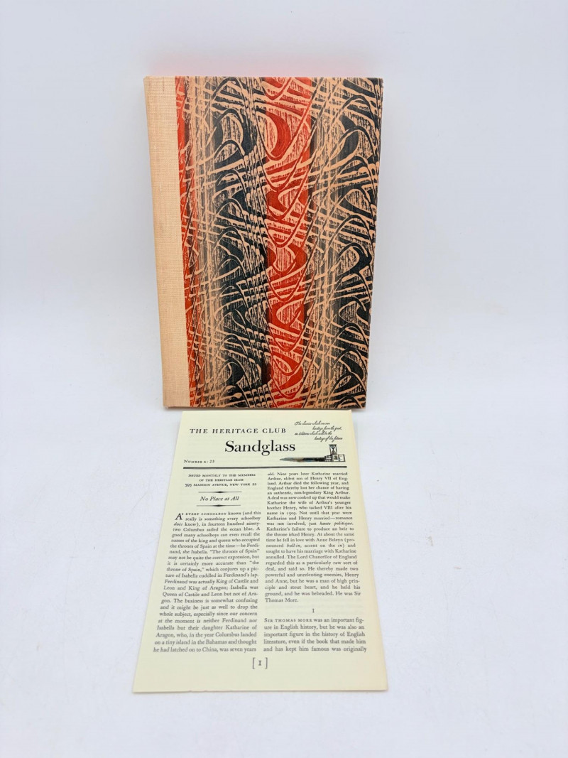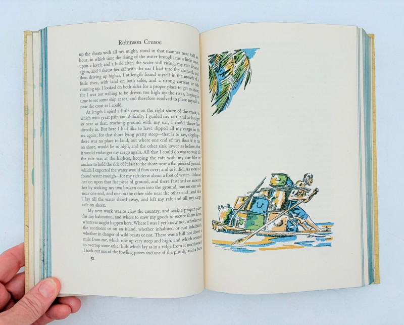 Wonderful works from the British Empire! Utopia (Thomas More) 1935. Heritage Press, New York.165 p. Owner's name on inside cover. Robinson Crusoe (Daniel Defoe)1930. Heritage Press, New York. 299 p. On The Origin of the Species (Charles Darwin) 1963. Heritage Press, New York. 470 p. Picture of Dorian Gray (Oscar Wilde) 1957. Heritage Press, New York. 287 p. Owner's name on inside cover Zulieka Dobson (Max Beerbohm) 1960. Heritage Press, New York. 277 p. Owner's name on inside cover Heritage Press existed from 1937 - 1982. They published almost exclusively classics in literature and history. Their publications were known for terrific illustrations, quality materials, and elegant covers that were lovely without being overly precious.