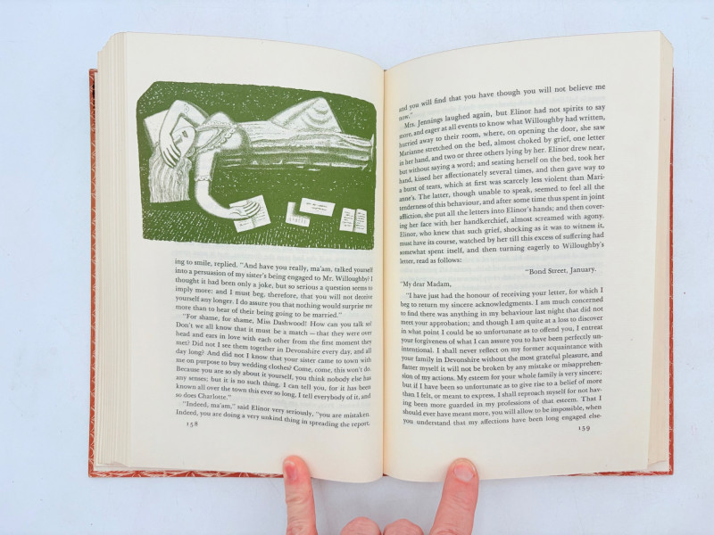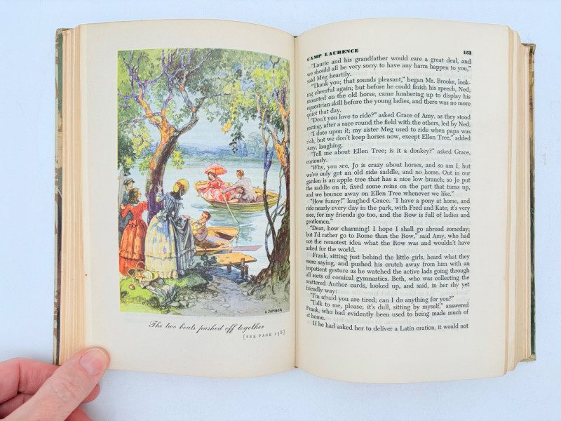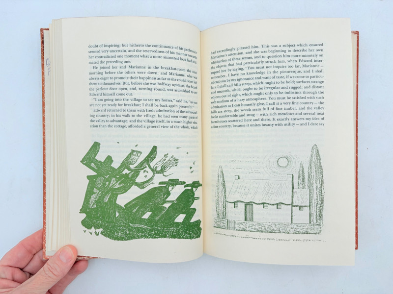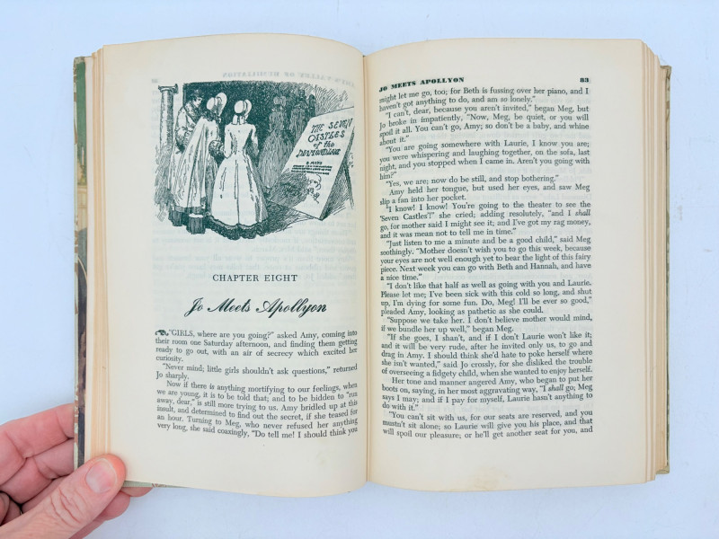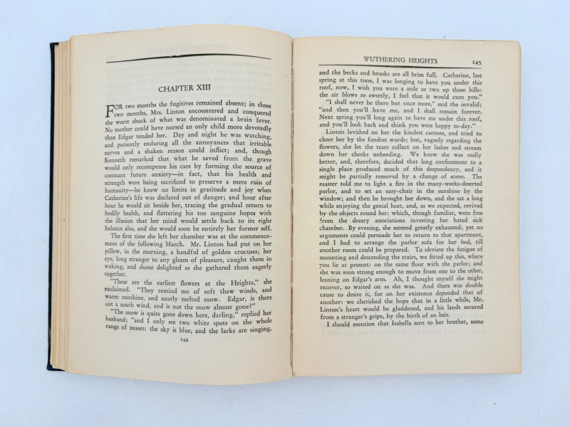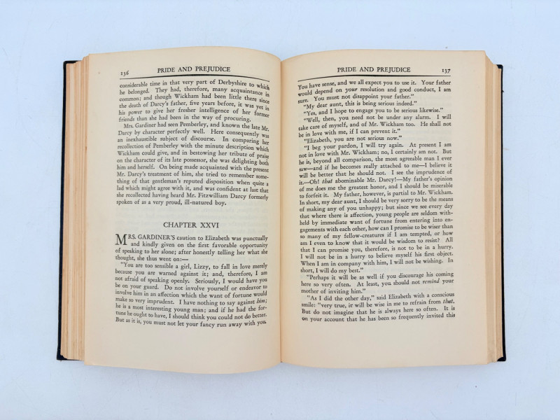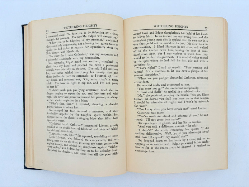 Five wonderful stories by 5 wonderful writers - who just happen to be female as well. Wuthering Heights (Charlotte Bronte) 1936. Book League of America, New York. 365 p. Pride and Prejudice (Jane Austen) 1937. Book League of America, New York. 364 p. LIttle Women (Louise May Alcott) 1947. Grosset & Dunlap, New York. 546 p. Gone With The Wind (Margaret Mitchell) 1937. Macmillan Co., New York. 1037 p. Please note that this book's binding is a bit loose and the front fly page is missing. Sense and Sensibility (Jane Austen) 1957. Heritage Press, New York. 333 p. Heritage Press existed from 1937 - 1982. They published almost exclusively classics in literature and history. Their publications were known for terrific illustrations, quality materials, and elegant covers that were lovely without being overly precious.