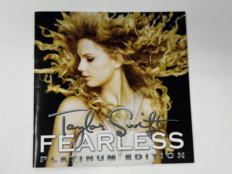 Authentic signed copy of Taylor Swift’s Fearless Platinum Edition CD. The front cover booklet is hand‑signed with a clear, well‑placed Taylor Swift autograph featuring her signature heart flourish. This lot also includes an additional unsigned booklet, offering both a preserved signed display piece and a clean original insert for regular handling. Details: Title: Fearless (Platinum Edition) Format: CD Artist: Taylor Swift Autograph: Hand‑signed on front cover booklet Components Included: Signed front‑cover booklet Additional unsigned booklet Jewel case Disc Edition Notes: Platinum Edition release with expanded tracklist Condition: Signed booklet: Excellent; strong signature with clean surfaces Unsigned booklet: Very good; light handling wear Disc: Very good with minor handling marks Case: Light shelf wear Collector Notes: