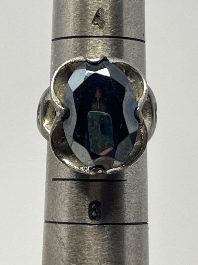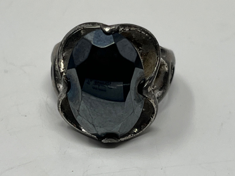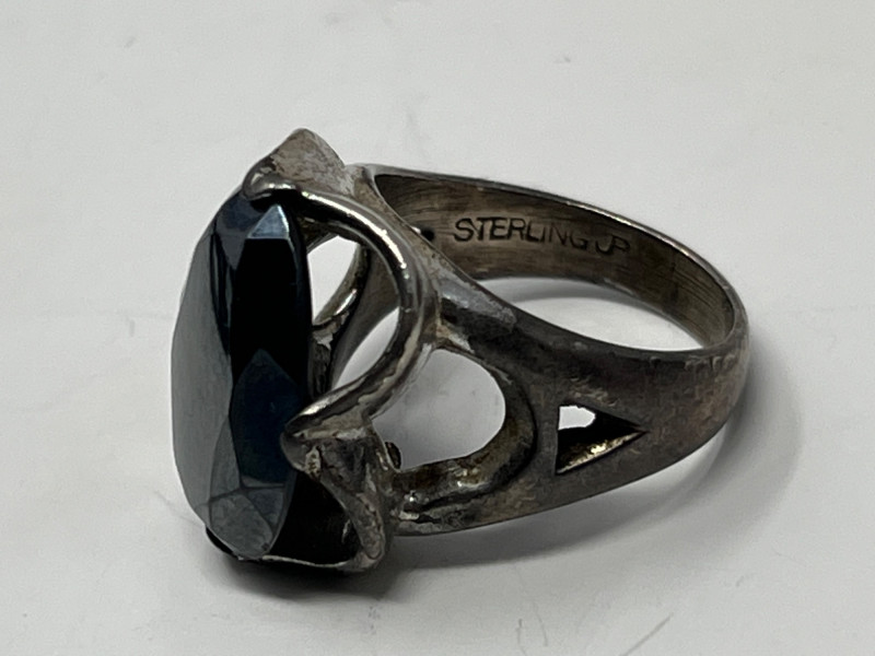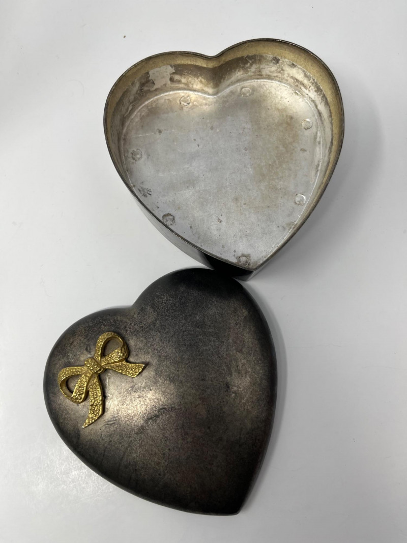 Decorative metal box with embossed heart motif. Light surface wear. 2. Sterling Silver Ring – Size 5.5