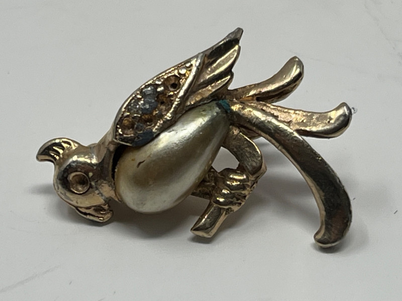 Classic leaf motif brooch in gold‑tone metal. Light wear. 8. Parrot Brooch