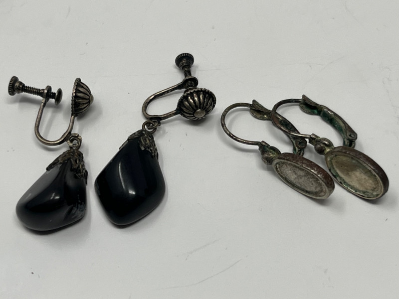 Figural parrot brooch with vintage styling. Functional pinback. 9. Earrings – 2 Pairs Dangle, 3 Pairs Studs