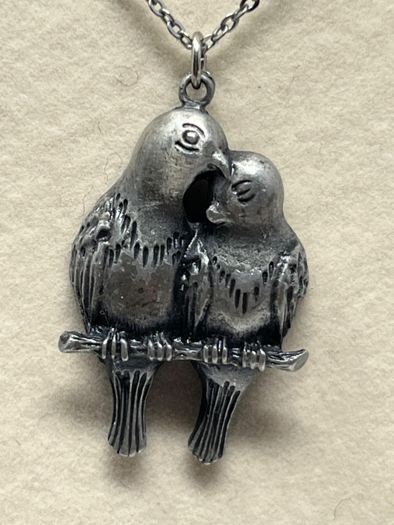 Figural owl pendant on chain. Pewter tone with vintage character. 5. Pewter Parrot Necklace