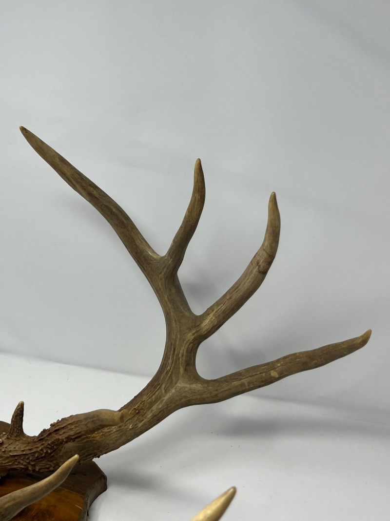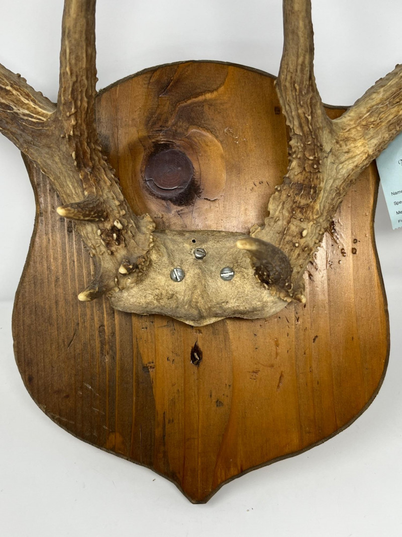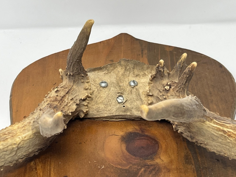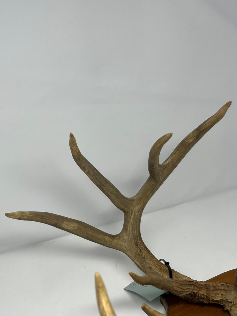 A naturally shed pair of White Tail deer antlers, ideal for cabin décor, lodge-style interiors, rustic wall displays, or taxidermy craft use. This estate-found set shows attractive symmetry, clean lines, and a warm natural patina. A solid decorative accent for collectors, outdoor enthusiasts, or anyone seeking authentic wildlife-inspired décor. Details & Notes Estate-found White Tail deer antlers Natural coloration and texture Suitable for wall mounting, display, or craft applications Overall condition consistent with age and natural origin No breaks or repairs observed A strong decorative piece with timeless appeal, ready for display in a variety of settings.