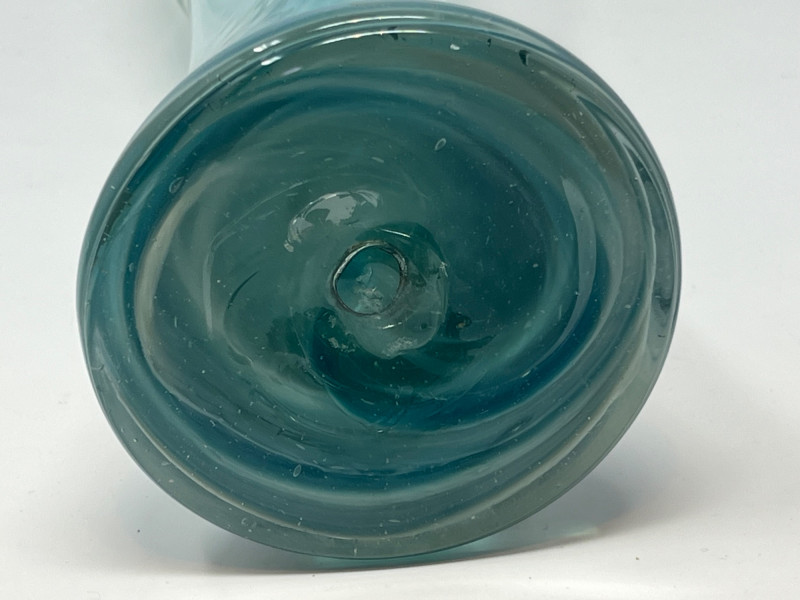 Lot # 40 - Vintage Mexican Hand‑Blown Art Glass Vase – Blue‑Green Swirl Form