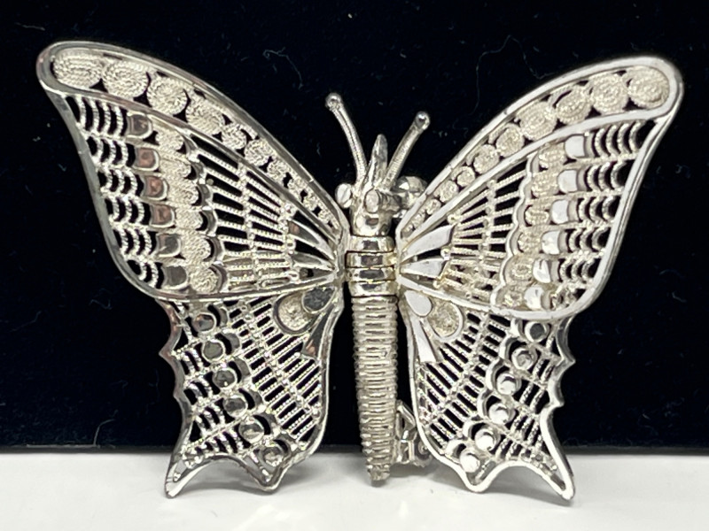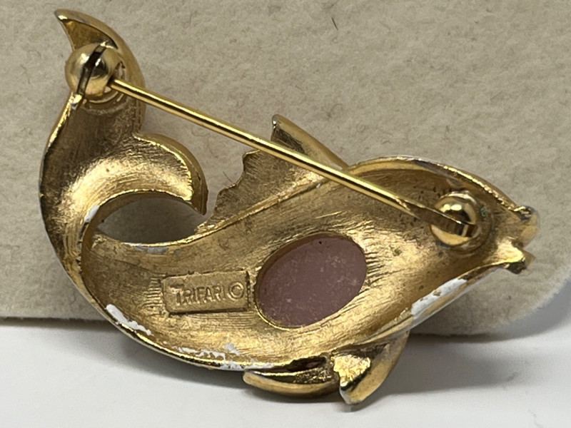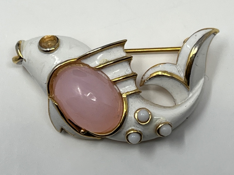 A varied selection including: One marked Trifari (fish design) One marked Sterling Germany (butterfly- wings move!) Two additional unmarked brooches with figural and decorative motifs