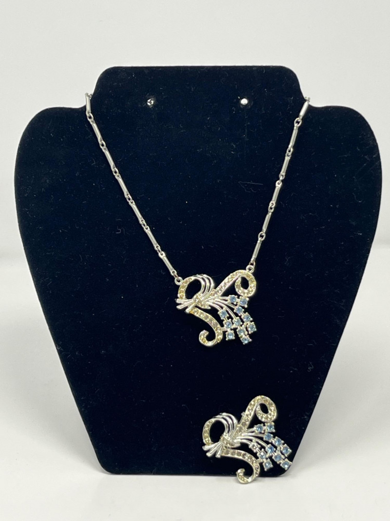 Coordinated vintage set with complementary design elements. Attractive for display or formal wear. Light vintage wear. 4. Vintage Pendants (2 Pieces, No Chains)