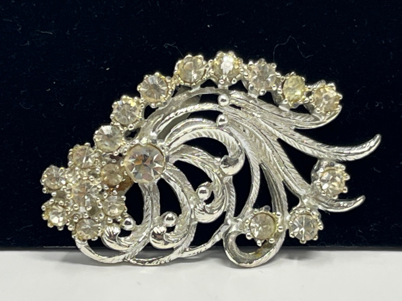 A curated mixed lot of ten vintage and costume jewelry items, offering a blend of wearable pieces and collectible brooches. All items show light age‑appropriate wear. 1. Sterling Silver Ring – Size 9