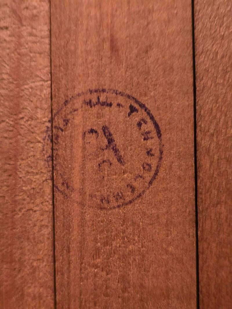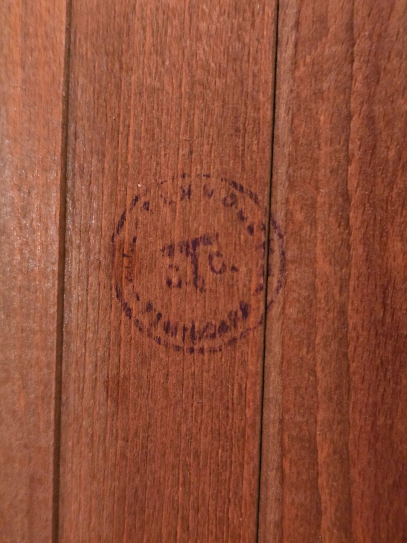 A handsome set of four mid‑century hardwood folding chairs, each marked on the underside with a circular factory stamp reading “MANUFACTURED BY / PLANT NO. 2”and an internal inspector code such as CTC. These production marks are consistent with American institutional furniture manufacturing of the mid‑20th century, when contract plants supplied durable seating for schools, churches, and municipal facilities. The design, materials, and construction align with this era’s emphasis on practicality, longevity, and clean, functional form. All four chairs fold smoothly and store compactly. They present beautifully with great overall condition, showing only light wear from gentle useand maintaining tight joints and solid structure. Mid‑century American hardwood construction Matching set of four folding chairs Factory‑stamped “MANUFACTURED BY / PLANT NO. 2” Internal inspector code CTC Compact, functional mid‑century design Smooth folding action and stable seating Warm wood tone with visible grain Light, age‑appropriate wear consistent with careful use Classic mid‑century utilitarian design, produced for institutional and community settings Solid wood build typical of 1940s–1960s American contract furniture Clean lines and practical proportions suited to both period interiors and contemporary spaces A versatile and well‑preserved mid‑century set, ideal for dining, studio, office, or event seating.Features