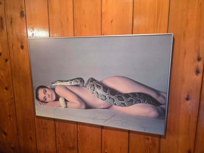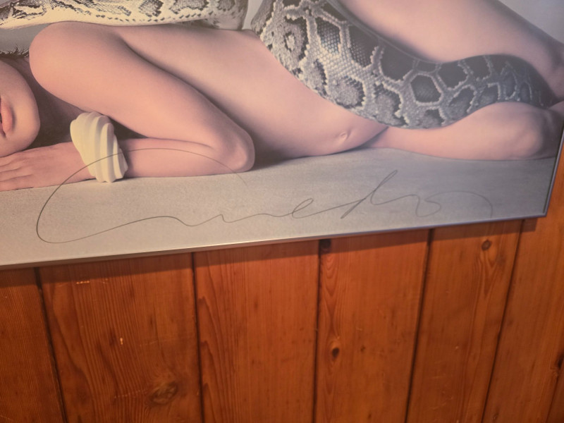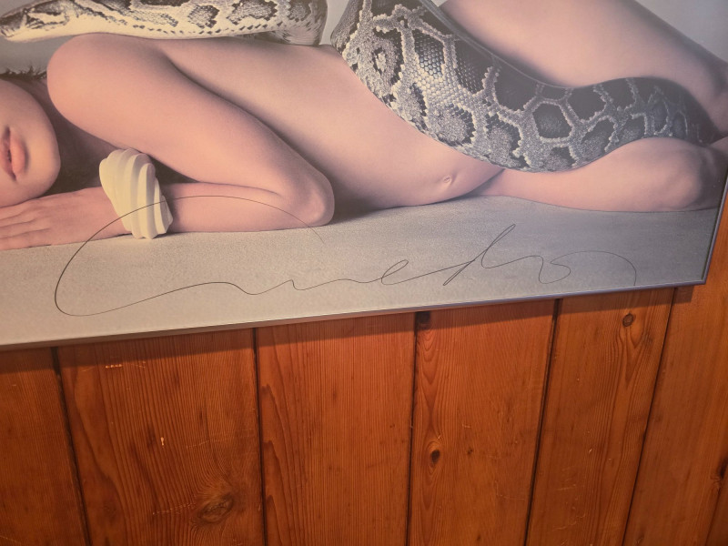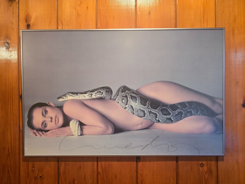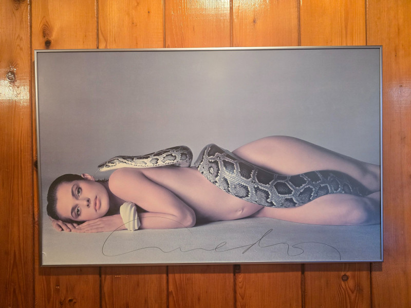 Large‑format poster of Richard Avedon’s iconic 1981 portrait Nastassja Kinski and the Serpent. This example features Avedon’s hand‑signed signature, offering strong provenance and collector appeal. The poster remains in excellent condition with no damage to the image. Framed; there is a small crack in the glass at the lower left corner, but the poster itself is unaffected.See photos for details. A standout piece for collectors of fine art photography, fashion history, and Avedon’s influential work.