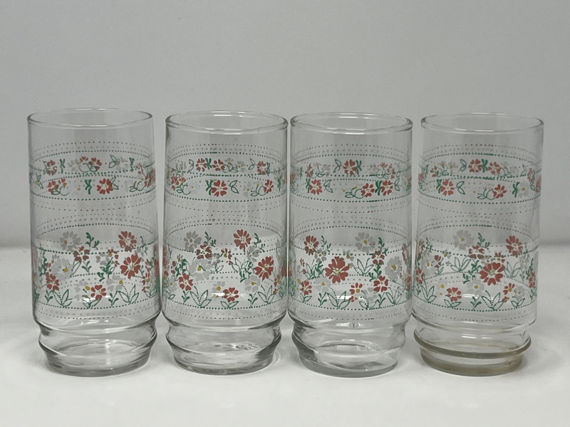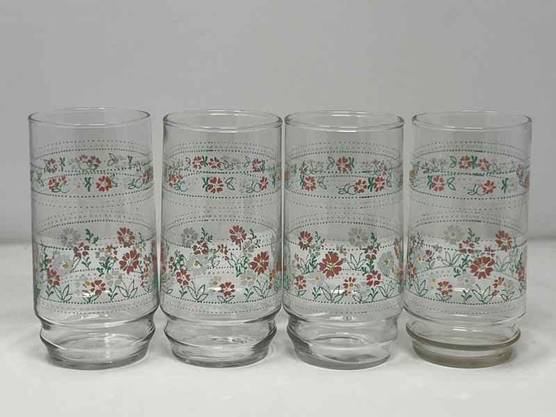 Lot # 99 - Set of 4 Retro Floral Print Drinking Glasses