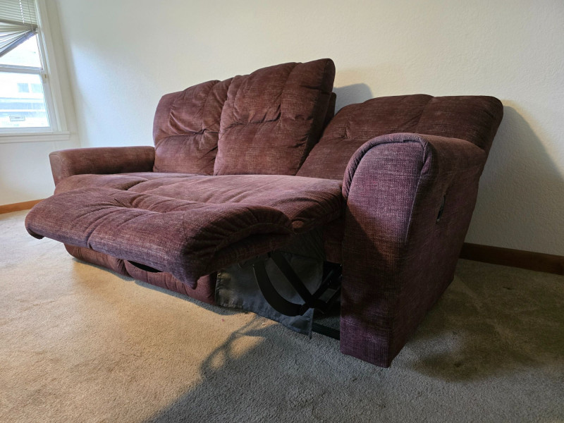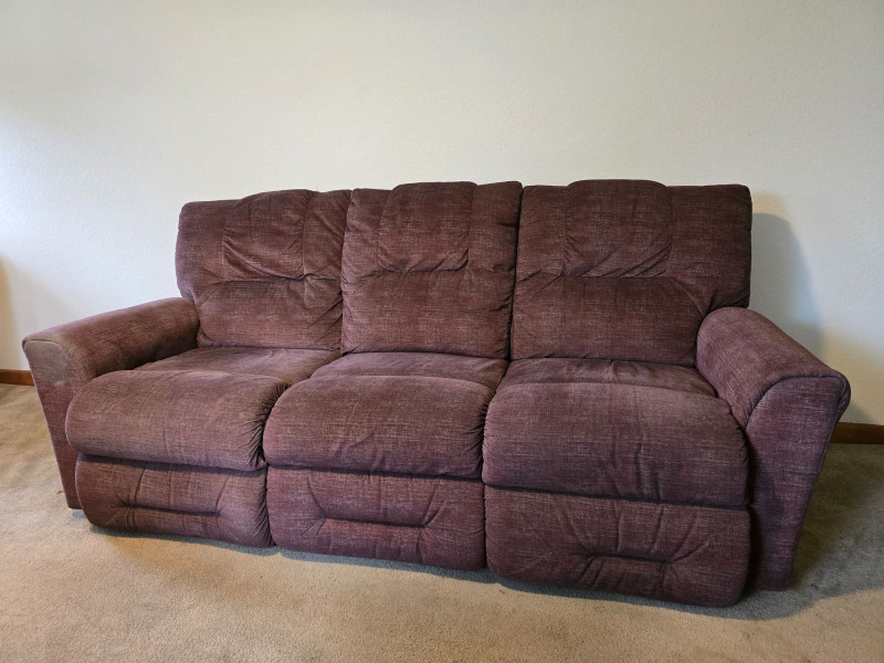 Comfortable, well‑made La‑Z‑Boy Easton reclining sofa in a warm brown textured upholstery. This model is known for its supportive seating, smooth reclining action, and classic, versatile styling suited for a wide range of interiors. La‑Z‑Boy Easton series reclining sofa Dual manual recliners with smooth, fully tested operation Textured brown fabric upholstery Padded arms and cushioned back for comfort Sturdy frame and reliable La‑Z‑Boy reclining mechanisms Neutral design suitable for living rooms, dens, or media spaces Reclining mechanisms operate properly on both sides Upholstery shows typical light household use No structural issues observed See photos for additional condition details A quality La‑Z‑Boy piece offering comfort and durability. Ideal for everyday seating or a cozy entertainment setup.Details & Features