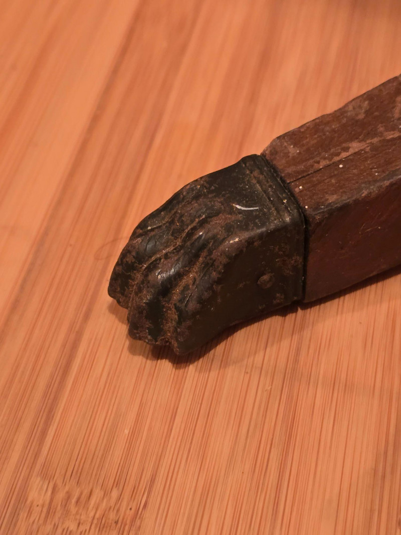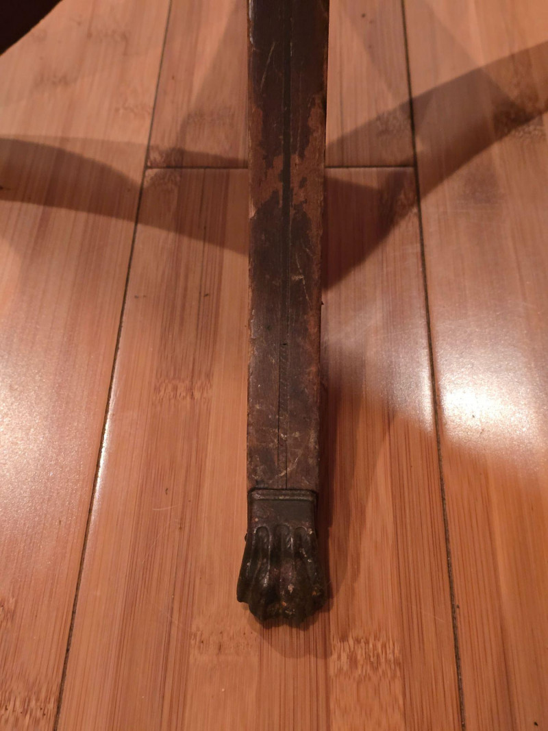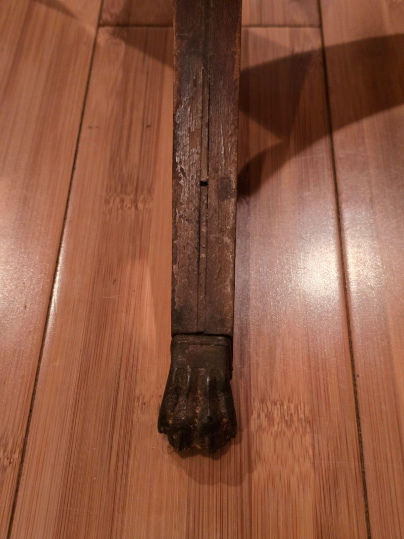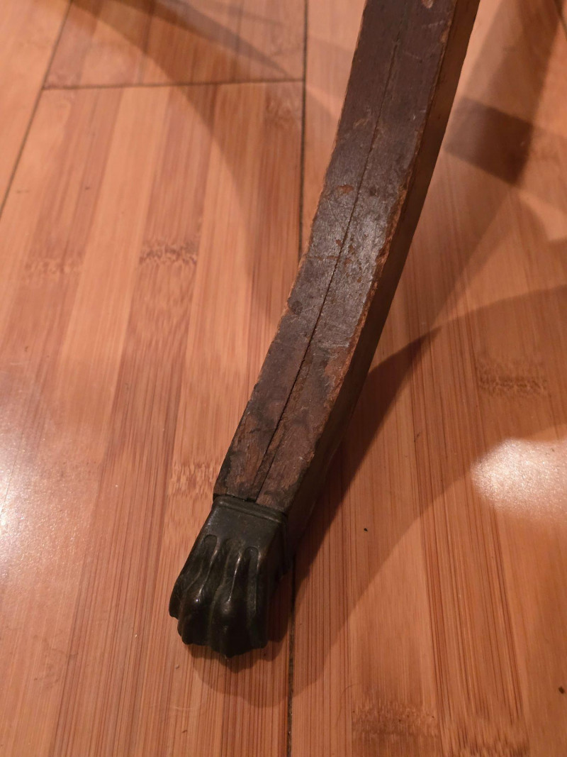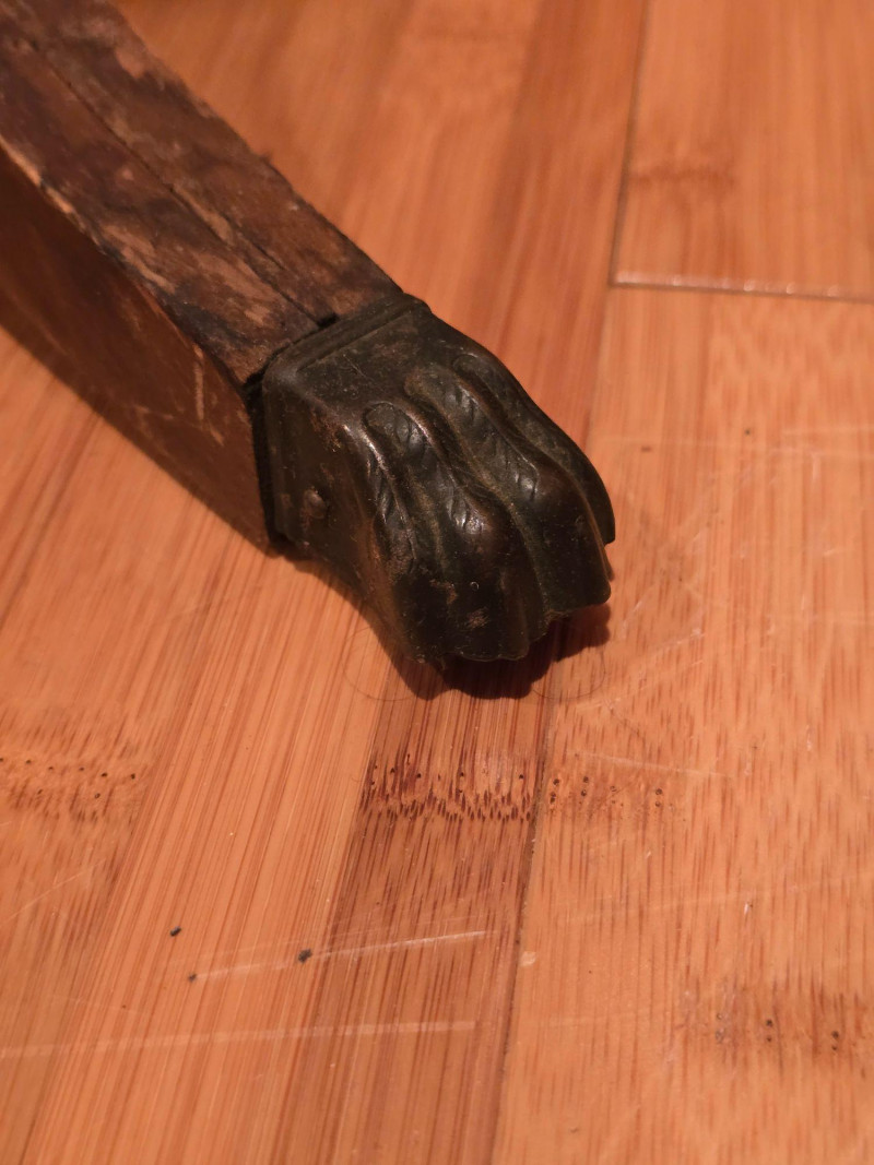 Classic antique mahogany pedestal table attributed to Imperial Furniture Co. of Grand Rapids, Michigan. The underside retains a worn Imperial label, consistent with early 20th‑century production. Features a turned central column, tripod base, and metal‑capped feet. Mahogany construction with warm, aged finish Tripod pedestal base with metal feet Underside shows worn Imperial Grand Rapids label Sturdy and well‑balanced form Ideal as an accent table, lamp table, or display piece Visible surface wear, scratches, and finish loss consistent with age Wear to edges and legs as photographed Metal feet show patina Structurally soundDetails