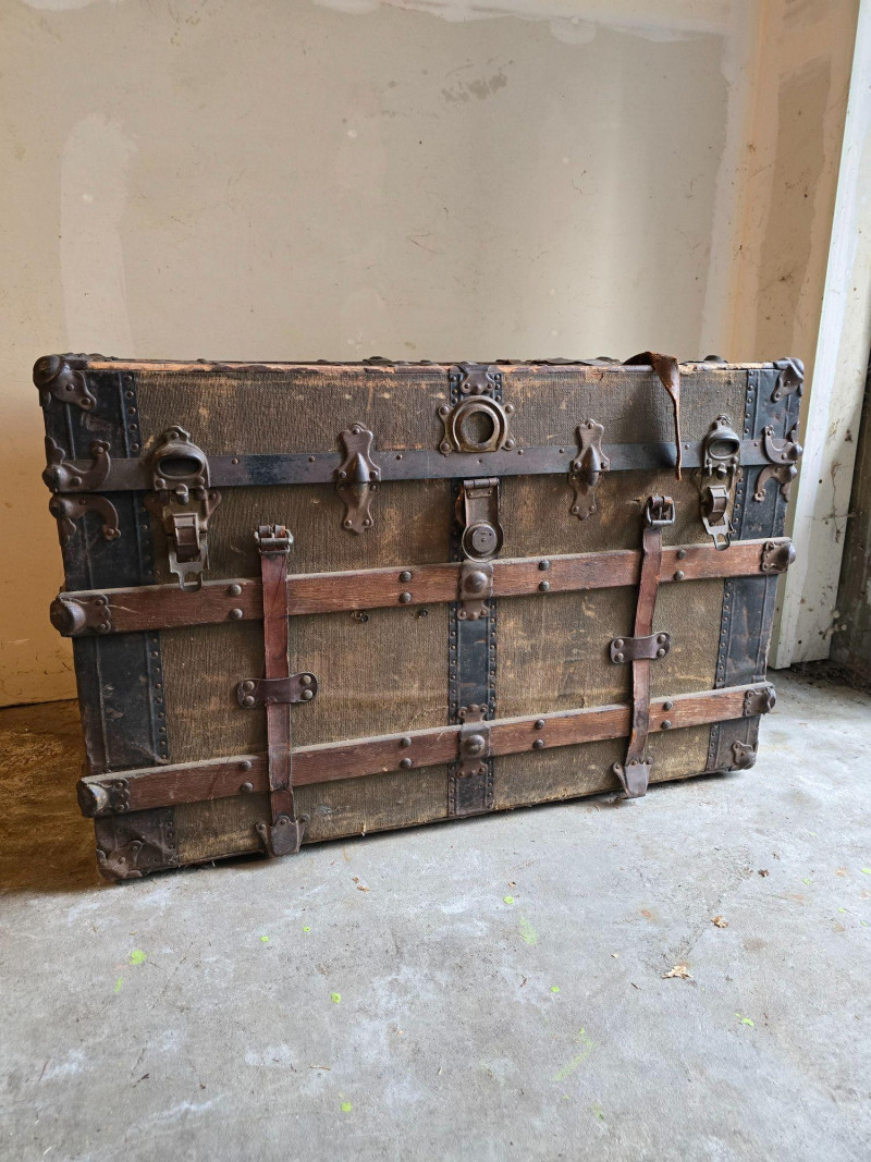 A single‑lot discovery opportunity combining a character‑rich antique trunk with a large, varied assortment of collectible plates from respected makers and series. Ideal for collectors, decorators, or resellers.